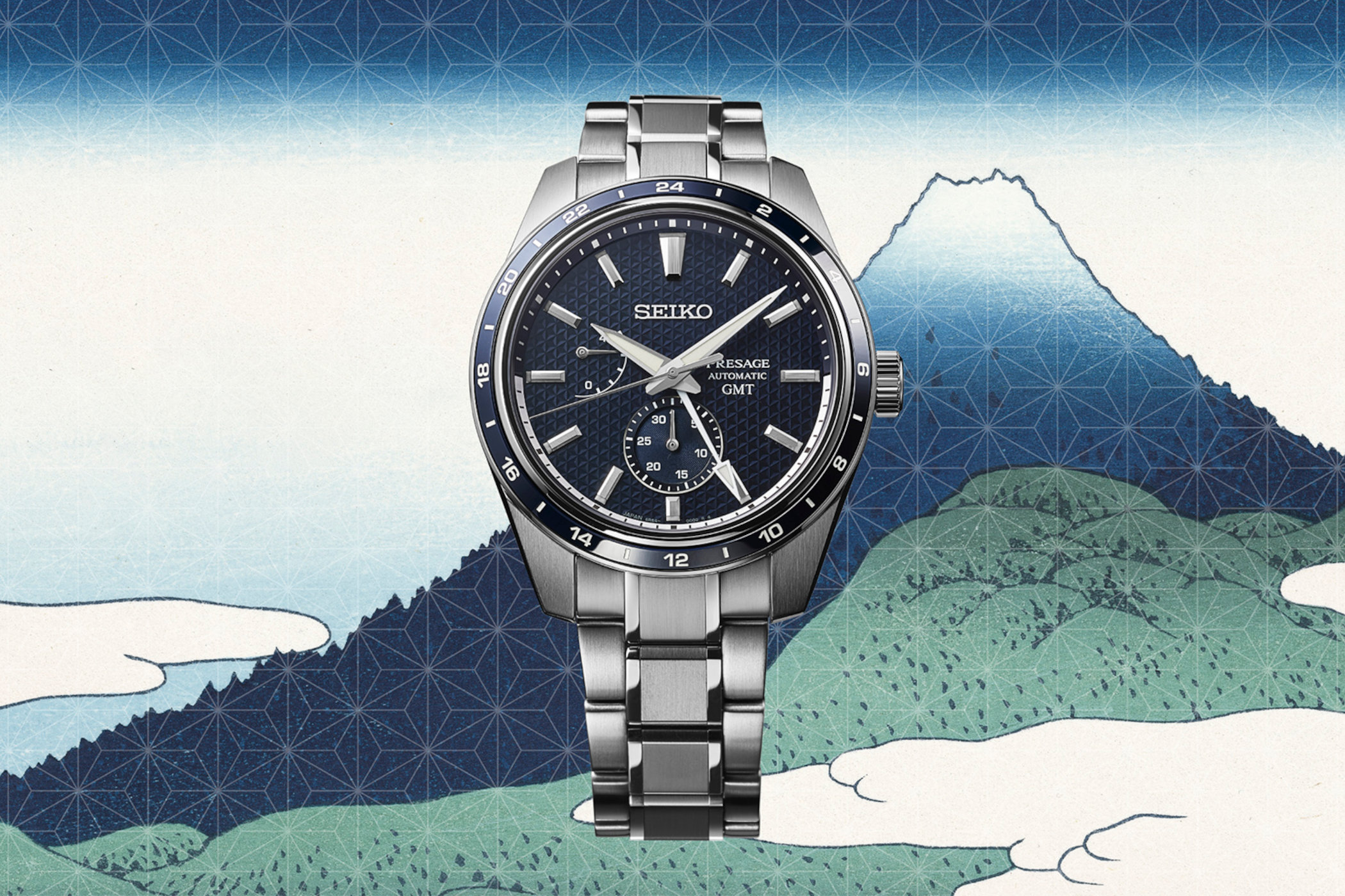 Quick Facts – 42.2mm x 13.7mm – stainless steel case with super-hard coating, brushed and polished – fixed 24-hour bezel with dark blue insert – sapphire crystal on both sides – 100m water-resistant – textured Asanoha hemp-leaf patterned dial in dark blue – faceted, brushed and polished hands and indices – LumiBrite on hands and markers – Seiko 6R64, in-house – automatic winding – 28,800vph – 29 jewels – 45h power reserve – central hours, minutes, seconds and GMT, power reserve, pointer date – stainless steel bracelet, with secondary horse-leather strap – limited to 900 pieces – EUR 1,540