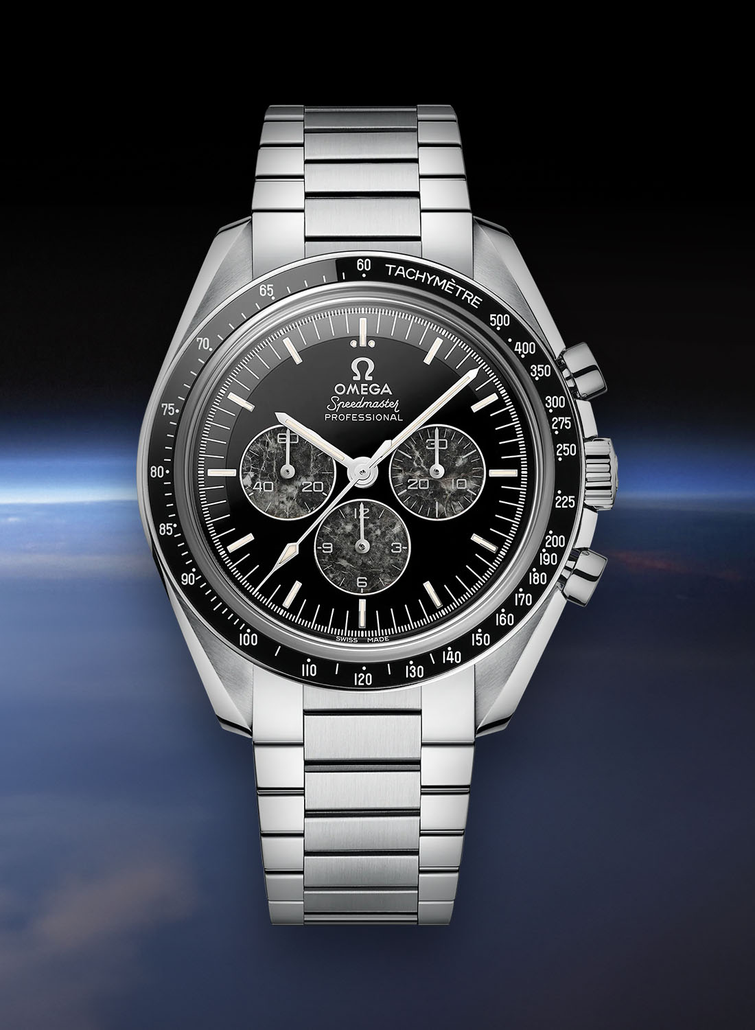 So here we are with this new edition of the Omega Speedmaster Calibre 321 in platinum with a matching platinum bracelet… With its highly luxurious case and bracelet, its dial made from hardstone with lunar meteorite inclusions, and possibly the most fascinating chronograph movement Omega currently produces, this feels like the endgame Speedmaster, the ultimate evolution of a watch that started life as an instrument for pilots… And there’s the price tag to match the status, at EUR 106,600 including taxes (or CHF 91,900 incl. taxes, USD 96,900 excl. taxes).