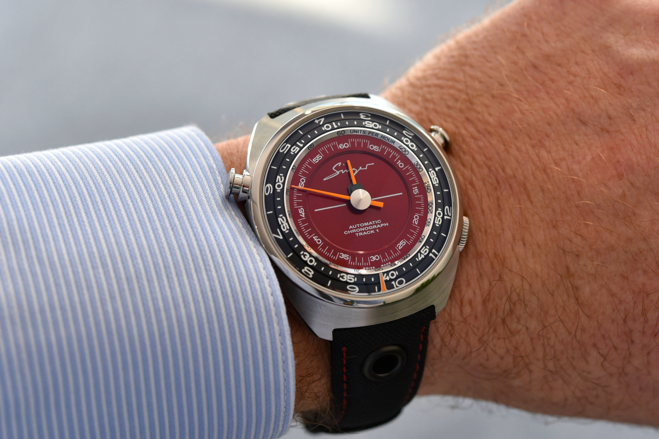 Singer Vehicle Design was founded in 2009 by Rob Dickinson in Los Angeles, California, a customisation factory devoted to air-cooled Porsche 911s that gives owners a vast array of choices to personalise their car. Like so many car fanatics, Rob Dickinson is also a watch fanatic and a chance encounter with watch designer Marco Borraccino was the departure point for Singer’s first chronograph. Although both men shared a passion for sports chronographs from the 1960s and 1970s, the Singer chronograph was ‘reimagined’ from head to toe with a radical focus on functionality.