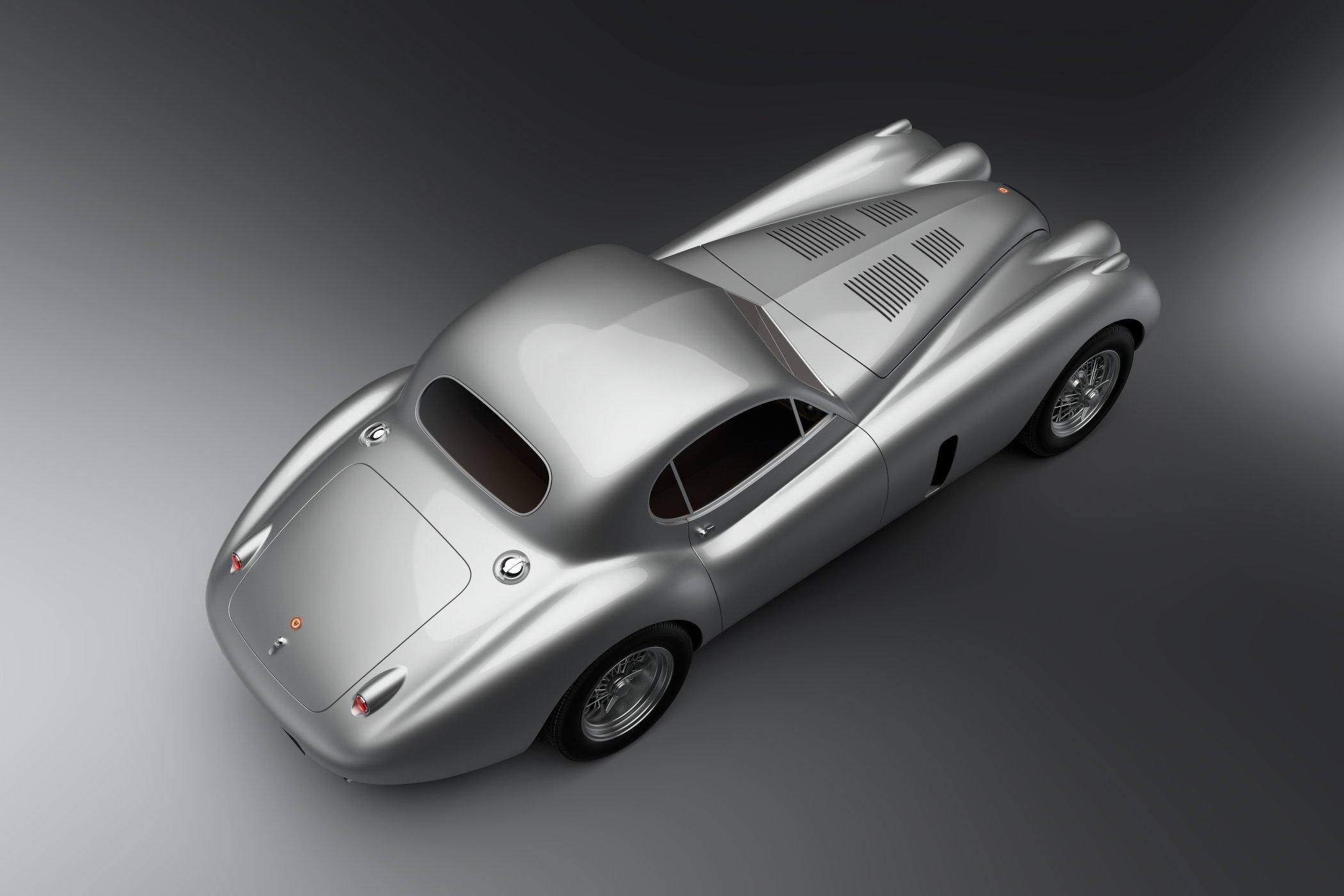 The front and rear arches have been slightly widened and have a more pronounced profile to them. Filling the wheel wells are period-inspired wire-spoke wheels but with a bit more width. The chrome bumpers have been deleted, and the long bonnet now has a subtle crease down the centre spine to match the split in the front window and washes out in the roof. The bonnet also has hand-cut louvres and redesigned vents for better cooling. The final touch is a more swooping tail section, which now has more of a teardrop shape.