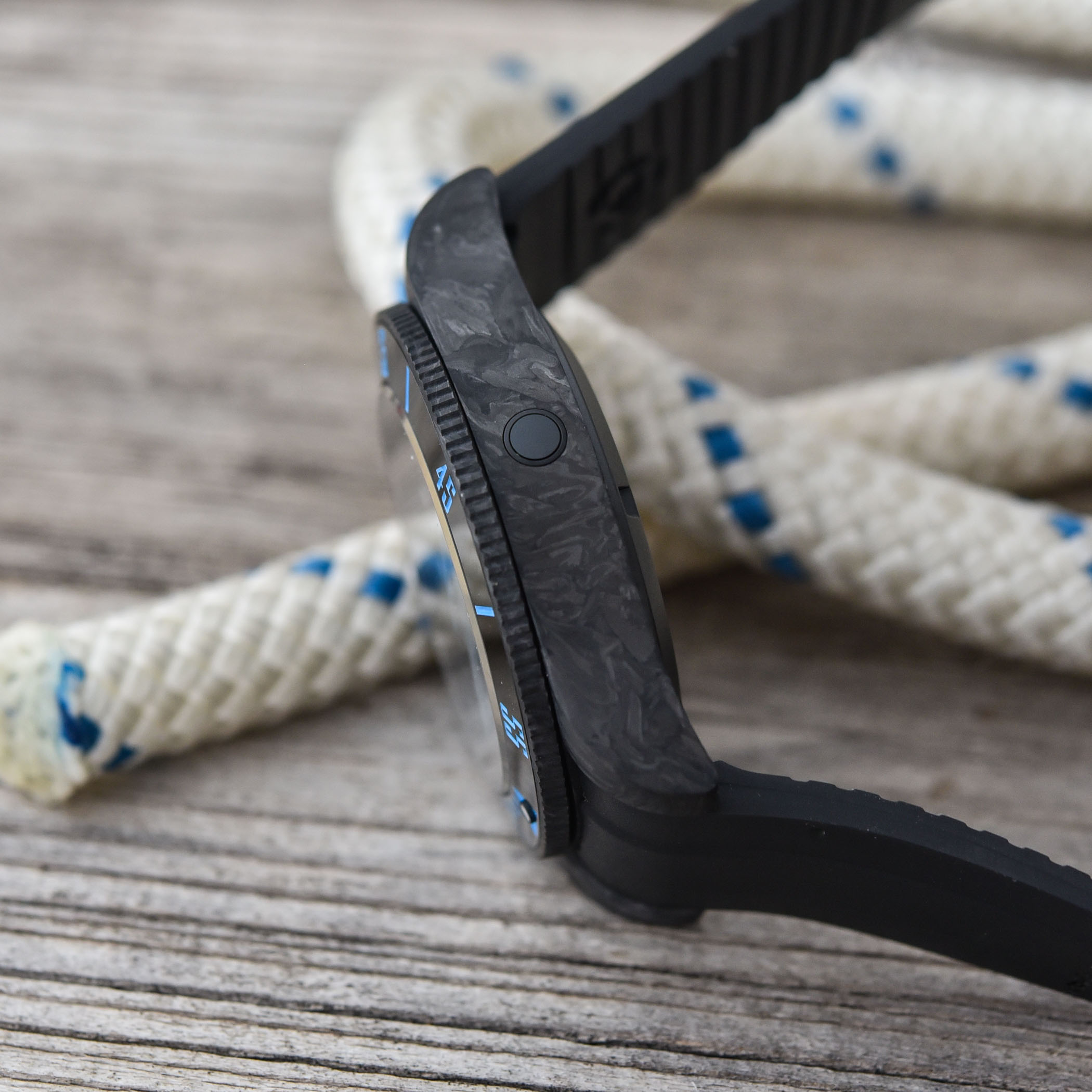 We first experienced the Seascoper 600 a couple of years ago during a hands-on session. We have to admit that it came as a surprise, not only because the brand wasn’t very familiar to us, but mostly because the dive watch impressed us with its quality, its equipment, its COSC in-house movement and its price – well below 2K euros. The market for dive watches is, to say the least, saturated, but Titoni has convincing arguments to position itself as a legitimate contender. New to the collection is this carbon-cased model that adds a technical look and lightness to the package. And this new Titoni Seascoper 600 CarboTech retains everything that made the steel models highly competitive.
