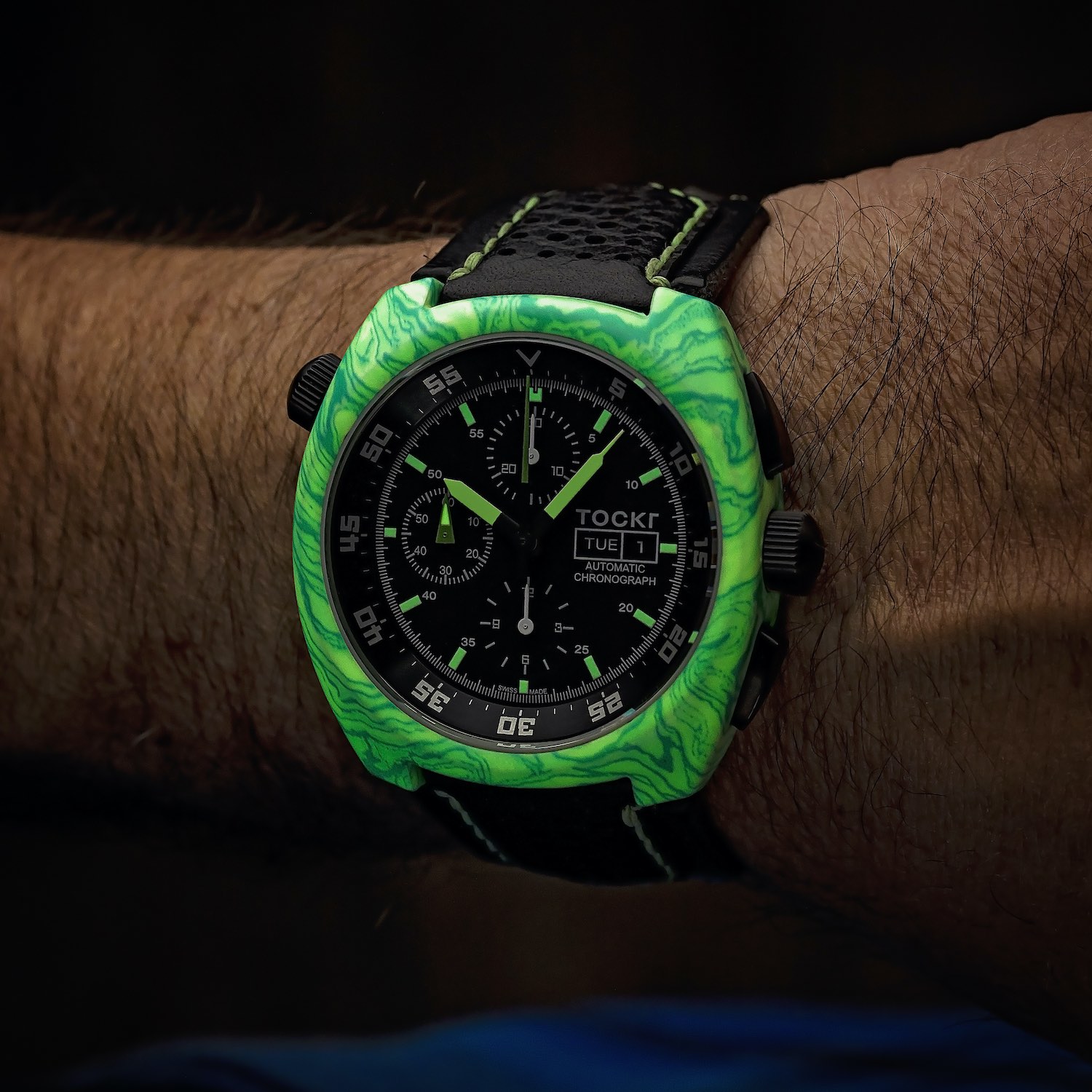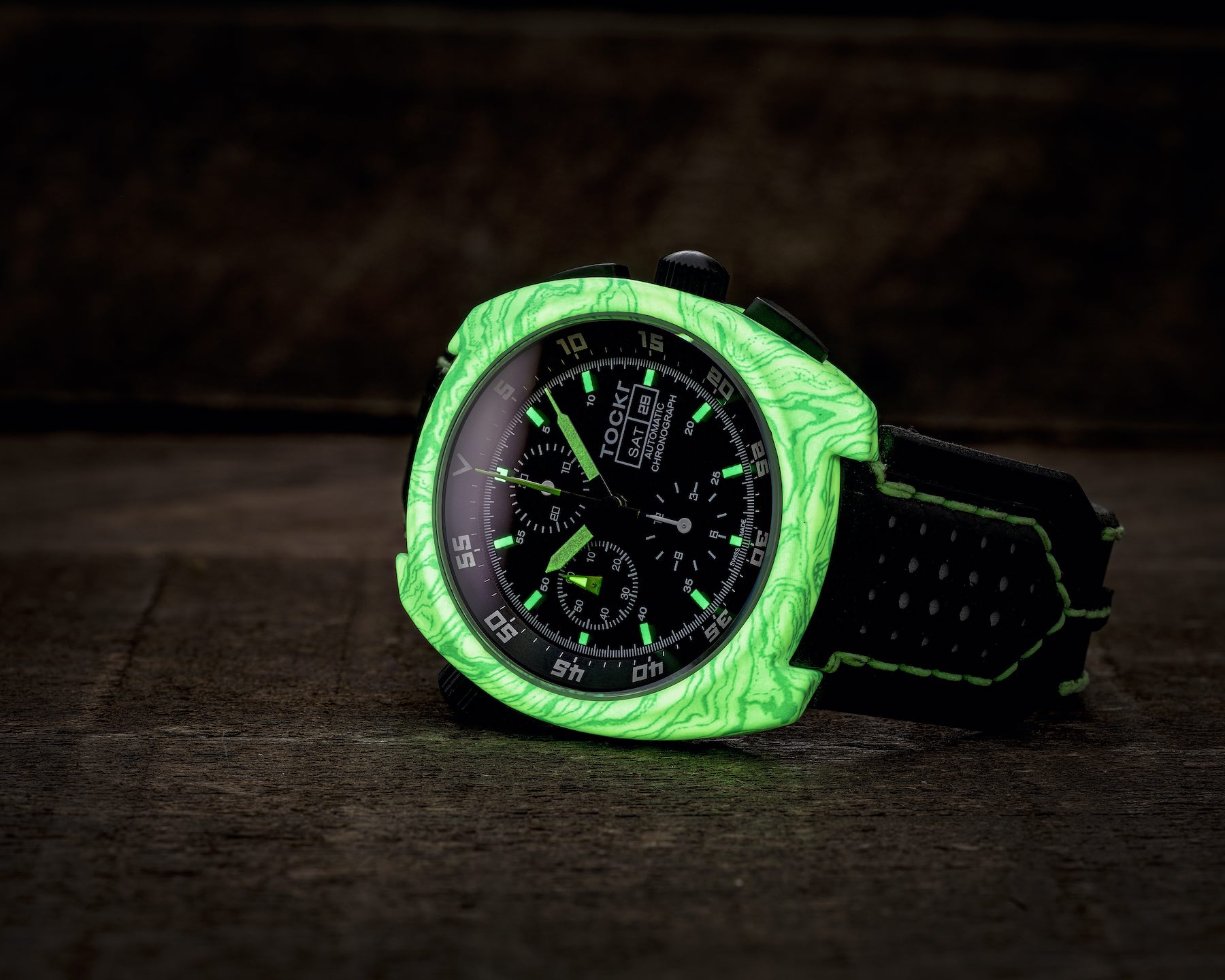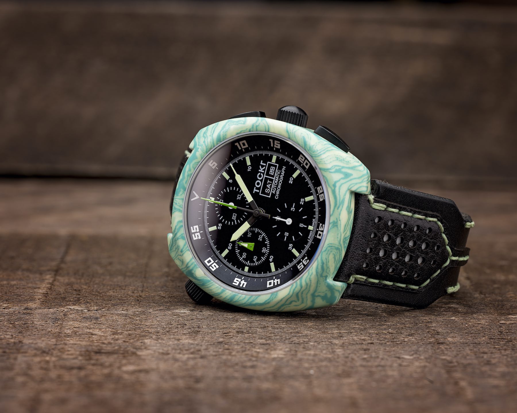 Tockr was founded in Austin, Texas by pilot Austin Ivey (co-founded by Sophy Rindler) in 2017 with the goal of producing accessible aviation-inspired watches. His grandfather flew C-47 transport planes in World War II and Austin has combined a lifelong passion of both flying and watches. The brand was among the first to use hydrographic printing for cases, probably best known for customizing car panels, and has now advanced to luminescent hydro-dipped cases – an industry first. With a range of printed designs that illuminate from every angle, the new Tockr Air-Defender Lume series really stands out.