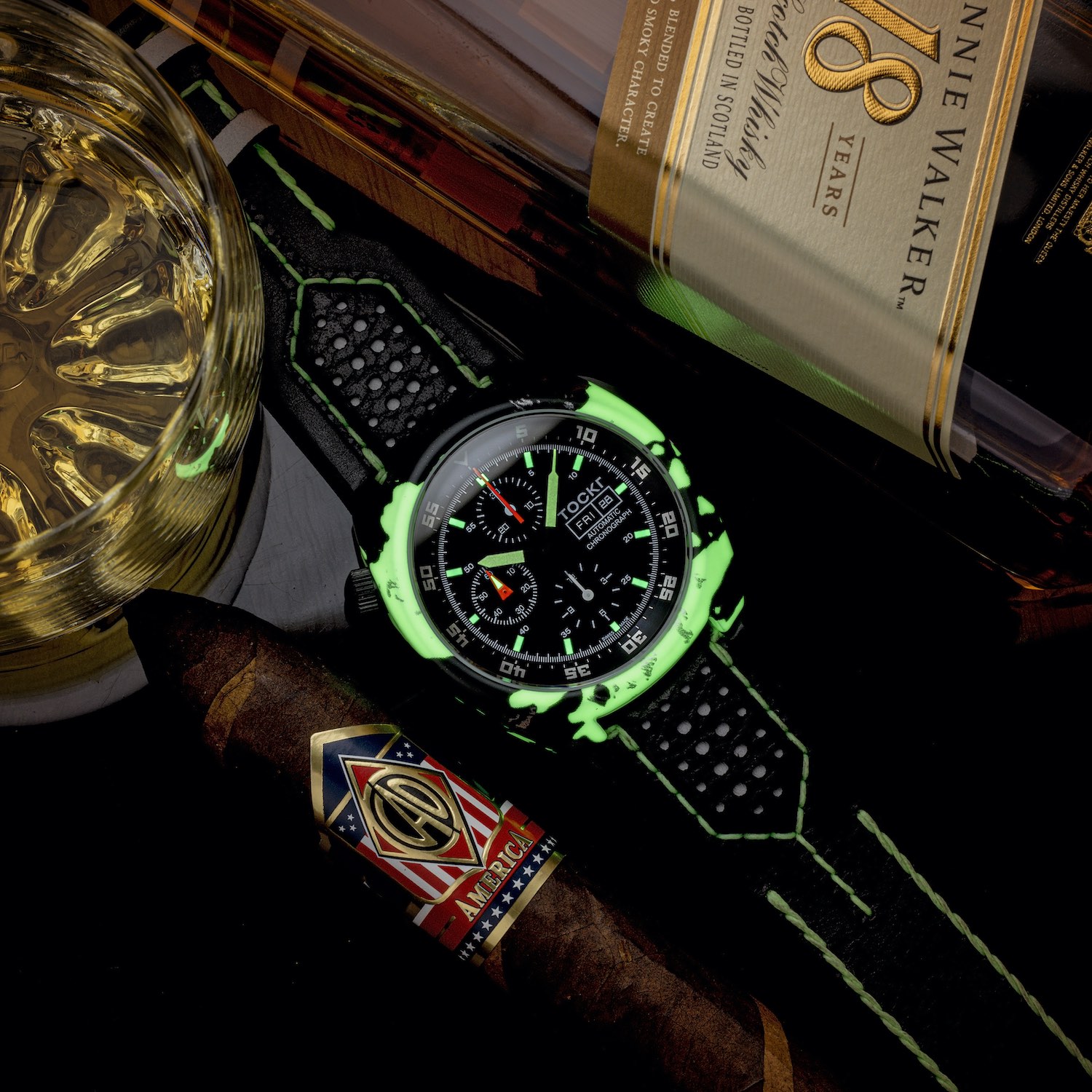 A retro, aviation-inspired chronograph and the first watch series to feature luminescent hydro-dipped cases.