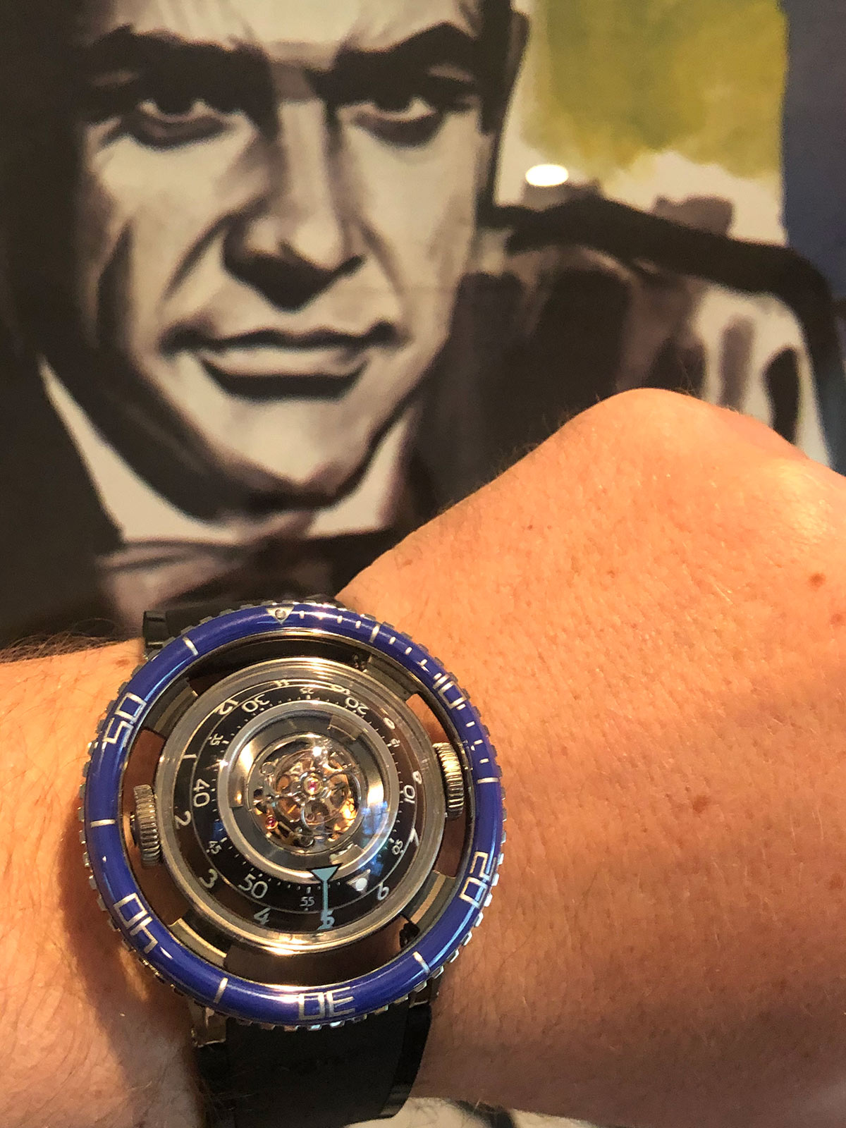 I decided on the blue titanium version because I am a huge fan of blue and I love the way the watch reads. It has the feel of a nautical compass and while being a large watch, it sits so perfectly on your wrist. Moreover, because it is titanium you hardly notice that it is there. I love everything about this watch and the way it wears. And I wear it a lot. To me, it is the perfect expression of MB&F’s design ethos and execution. It feels like a sculpture that I can take with me wherever I go and appreciate every time I look at my wrist. I never hesitate to grin when I see it on my wrist. I often joke with friends that this is my favourite weekend watch and it is hard for me to argue that there is a more outgoing weekend watch than the AquaPod.