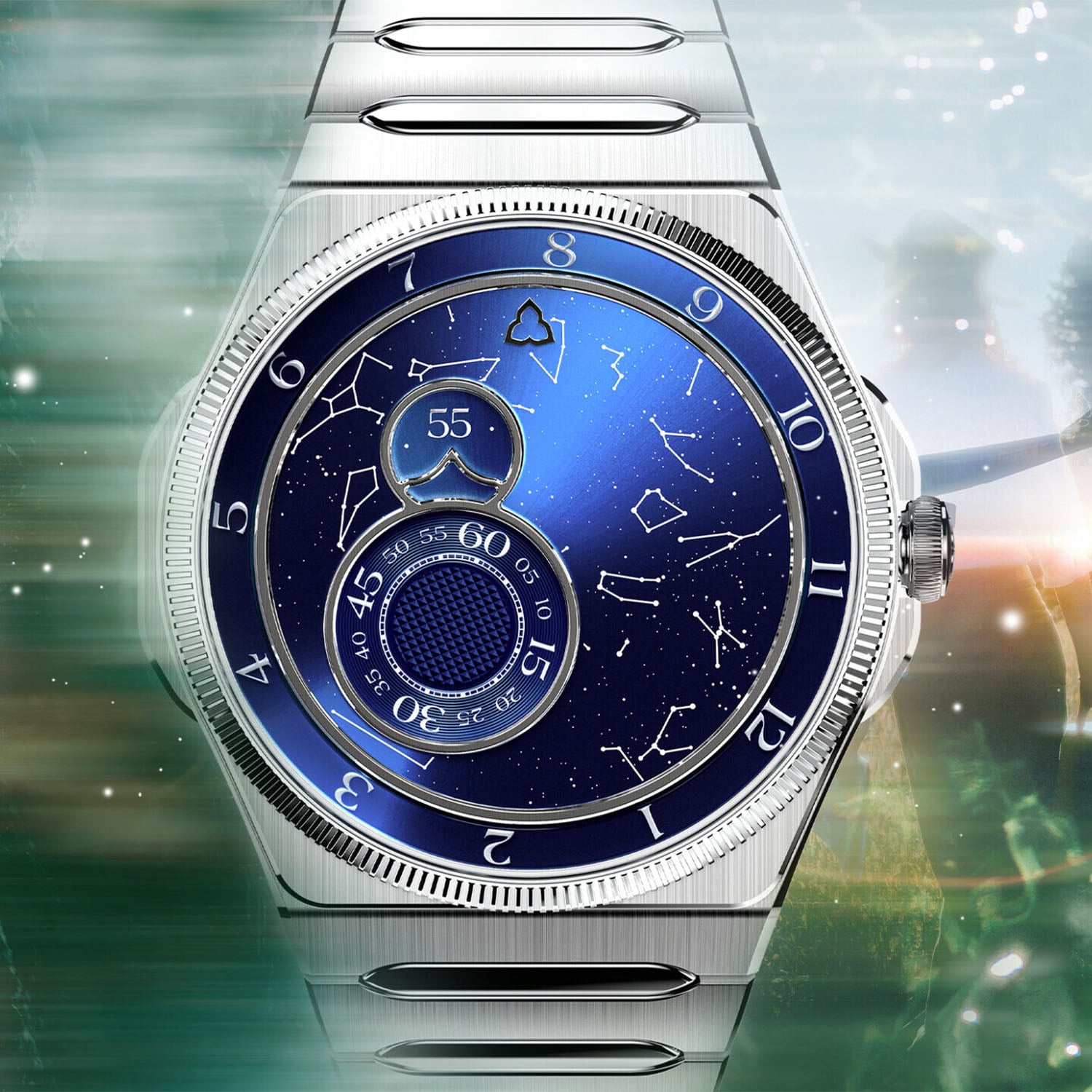 Founded in 2018, Trilobe chose to build its collection around an unconventional way of displaying time. Instead of hands, the brand relies on rotating rings and fixed pointers, creating a constant sense of motion across the dial. This concept, first seen in Les Matinaux and Nuit Fantastique, was later adapted for a sportier Trente-Deux. This model also introduced the brand’s first in-house movement, the X-Nihilo calibre. The new Trente-Deux Secret Edition returns with a constellation dial, now a fully personalised feature.