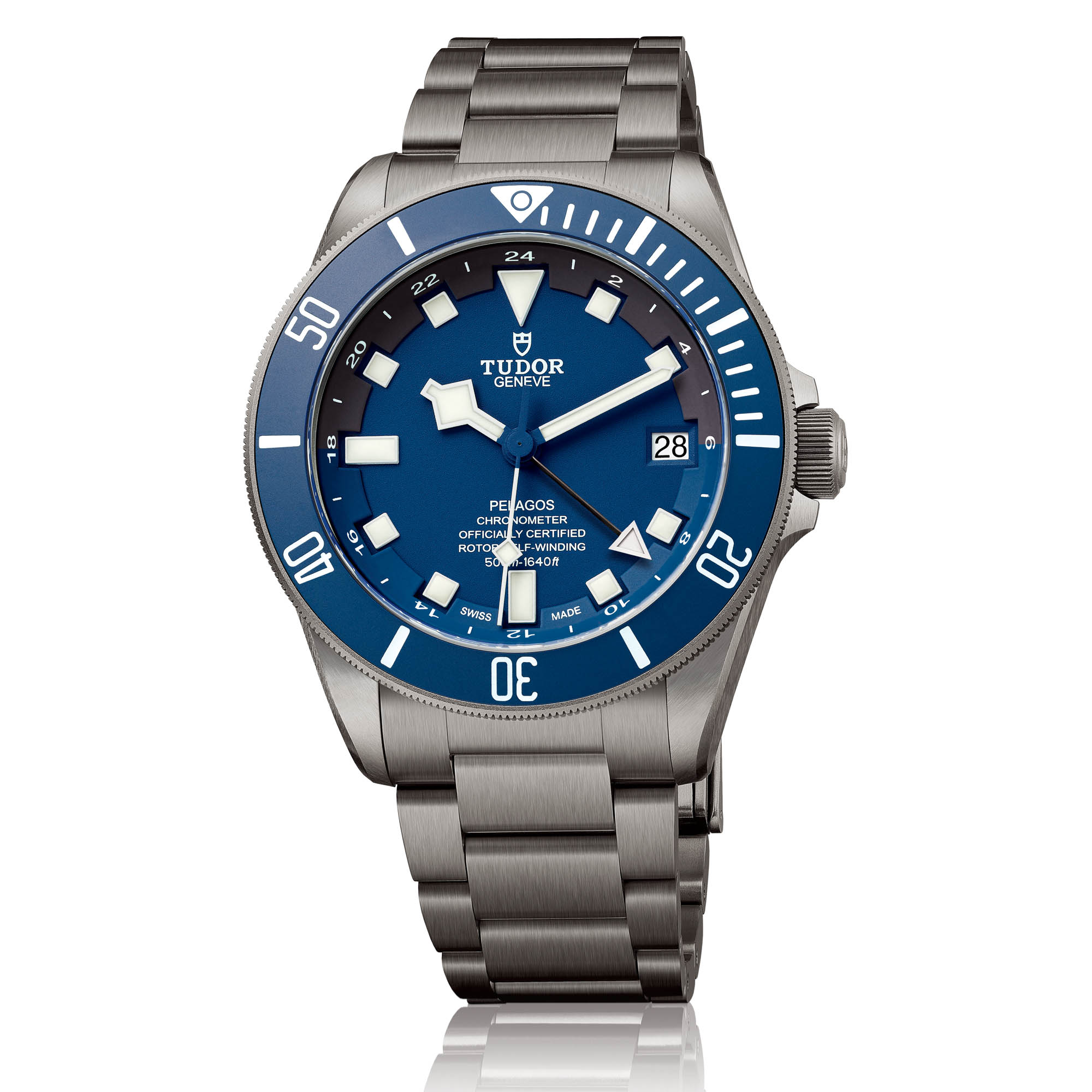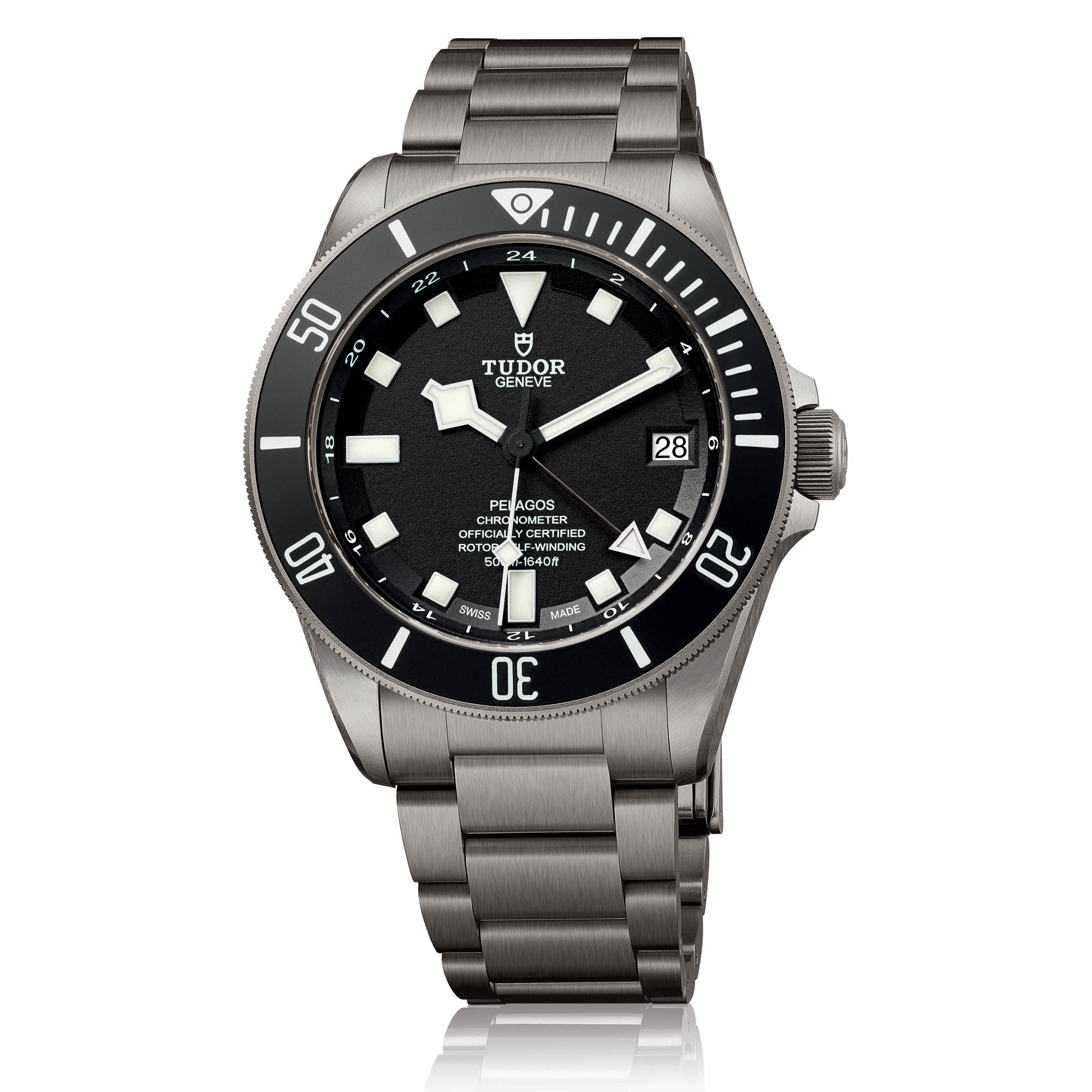 In order to keep the attributes of the Pelagos intact – water-resistance of 500m and true diving capacities – we have integrated the GMT function in a way that doesn’t interfere with the diving scale on the bezel. Linked to the central GMT hand is a 24-hour scale printed on the inner flange. In such a way, the wearer can use this watch as a travelling companion when on land, without sacrificing its formidable diving functions with its 60-minute scale on the bezel.