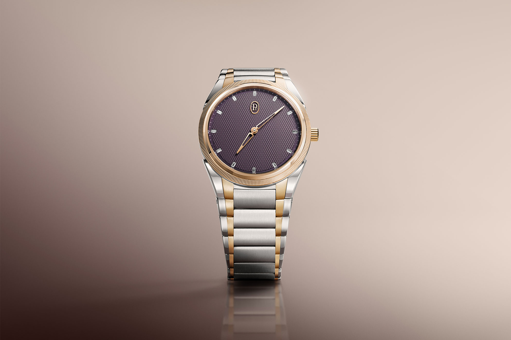 Parmigiani Fleurier, the elite watch brand founded by master restorer and watchmaker Michel Parmigiani in 1996, underwent a management change in 2021 with the appointment of Guido Terreni. Terreni’s roadmap for Parmigiani involved streamlining the collections and focusing on a new collection derived from Michel Parmigiani’s Tonda watch. Released that same year, the Tonda PF is a lineup of refined luxury sports watches with guilloché dials, integrated bracelets and in-house movements. Responding to requests for a more compact, unisex case size, Parmigiani produced a 36mm version of the Tonda PF Micro-Rotor, the most straightforward time-only model. The latest reference is a two-tone rose gold and steel Tonda with a rich ruby dial.