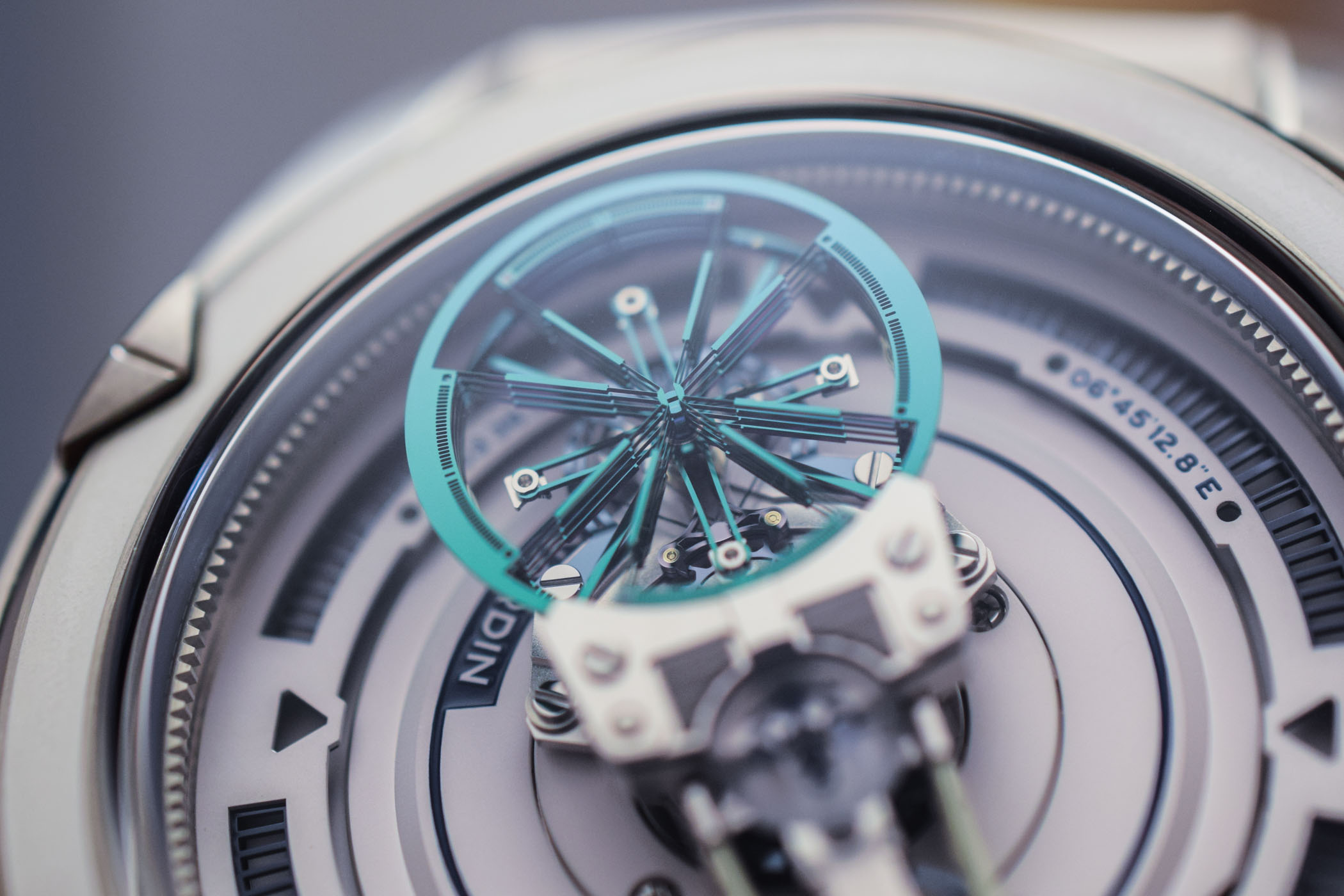 The oscillator of the Ulysse Nardin Freak NeXt combines high frequency and low amplitude (only 45° versus approx. 300° on a classical watch), operating at an impressive 12Hz frequency (or 86,400 vibrations per hour) for a robust 70-hour power reserve. The use of silicon means that the oscillator is practically insensitive to magnetic fields and temperature changes. The following video will make its functioning clearer.