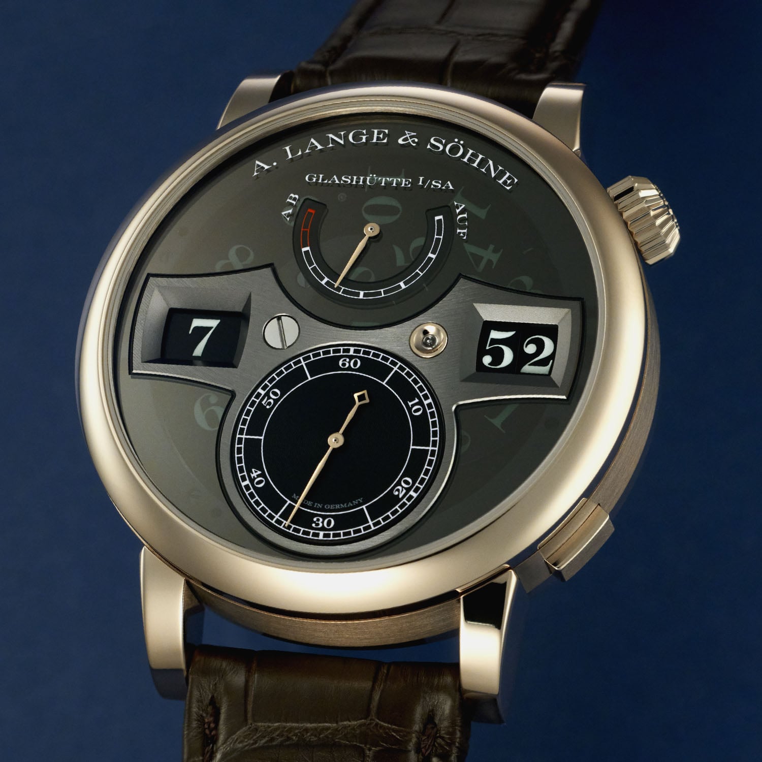 It may be late to the jumping hour game, but let’s look at what’s arguably the greatest example of a modern jumping hour “digital” wristwatch with the A. Lange & Söhne Zeitwerk. Ferdinand Adolph Lange founded the German brand in 1845, but it was completely destroyed during World War II by aerial bombing and shuttered. The great-grandson of the founder, Walter Lange, relaunched it in 1994 with four haute horology models, including the Lange 1 and Saxonia. The Zeitwerk didn’t debut until 2009, but has since defined the brand a bit with its iconic, horizontal analogue/digital format. It comes in several trims today, such as time-only (all have power reserve indicators), with a perimeter date and with a dial-side minute repeater, and all share a common layout with horizontal windows – Jumping hours on the left and minutes on the right. Like the IWC Pallweber, the minutes are displayed via two discs, but the horizontal layout mimics a modern LCD digital watch, unlike the traditional, vertical Pallweber counterpart.