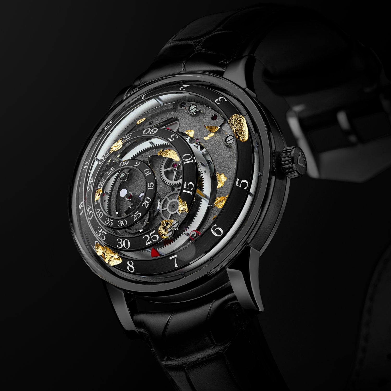This one certainly has an MB&F vibe, but follows Trilobe’s established design language from the original Les Matinaux and is a wholly unique creation. It’s a surprisingly young brand, given the exotic and sophisticated nature, founded in 2018 by Gautier Massonneau in Paris. It took only four years for one of its watches, Nuit Fantastique Dune, to win the Petite Aiguille prize at the 2022 Grand Prix d’Horlogerie de Genève (GPHG) – a real testament to the design prowess of the brand. The most intriguing watch (subjectively) is the Une Folle Journée with a three-dimensional series of rings that replace conventional hands (or conventional anything for that matter). It’s a big step from the two-dimensional Les Matinaux concept of concentric discs and seems to defy gravity under the high-domed crystal. Une Folle Journée is “A Crazy Day” in French, and that’s an appropriate name for this wild piece.
