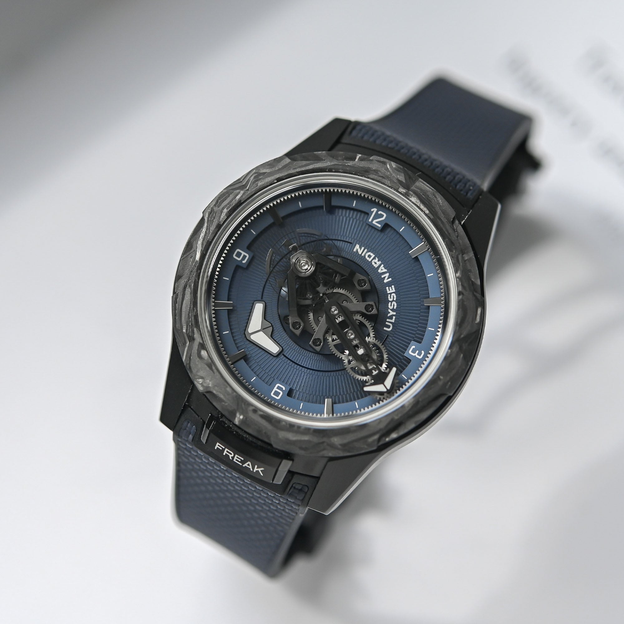 The original Freak from 2001 had no dial, hands or even a crown, and the entire movement again rotated every hour as it doubled as a minute hand. The oversized mainspring barrel rotated every 12 hours to indicate the hours. A rotating bezel was used to set the time, while the case back turned to wind the movement. A freak of a watch indeed, as it was a crazy out-of-the-box design, and it established Ulysse Nardin as a forward-looking leader in the industry. The models were expensive as you might expect, but the subsequent Freak X from 2019 was more accessible and introduced a conventional crown to the design for both winding and time setting. The automatic movement (Calibre UN-230) was a bit less complex than the traditional Freak, but it maintained the rotating carousel dynamic and functioned in the same way. It started at USD 21,000, which isn’t cheap by any stretch, but less than half of the Freak Out from a year earlier at USD 48,000 and models like the Freak ONE Navy Blue at EUR 67,500.
