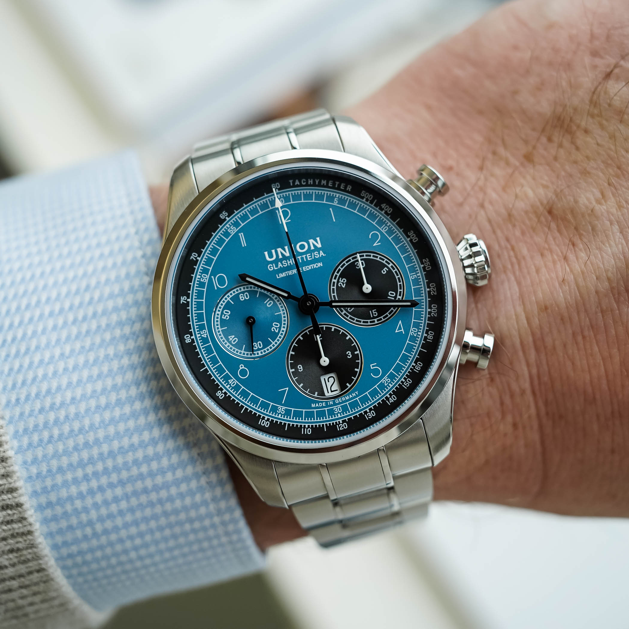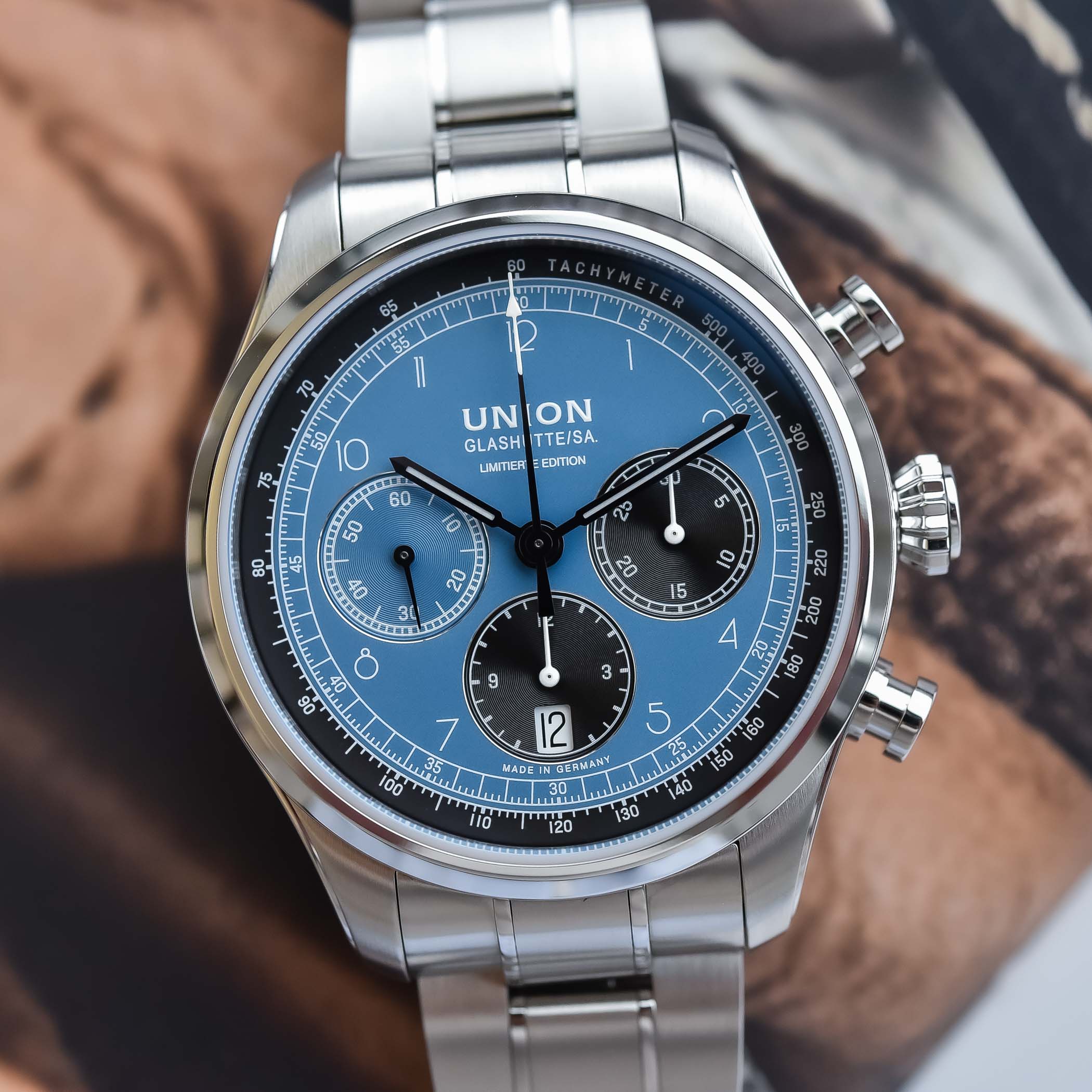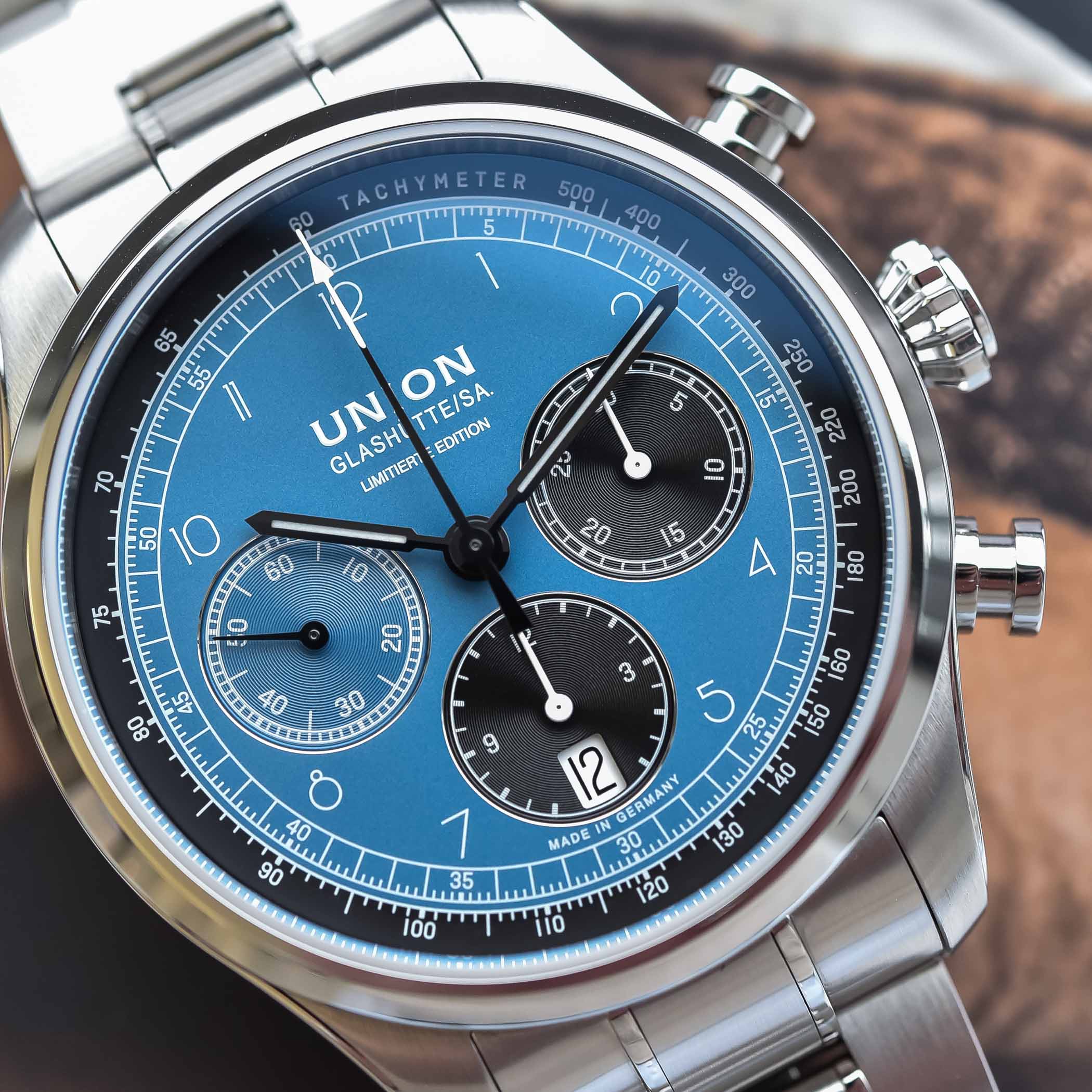 The Union Glashütte Belisar Chronograph Speedster Limited Edition in Electric Blue