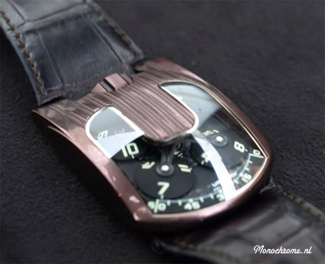 For Baselworld Urwerk presented the new 103T or Tarantula. Today Urwerk comes with this model in red gold and grey gold.
