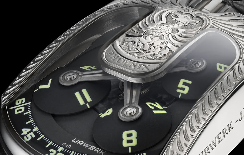 End of 2010 URWERK stopped production of the UR-103, their landmark timepiece. Especially for Only Watch 2011 the UR-103 rises from the ashes with the piece unique UR-103 Phoenix.