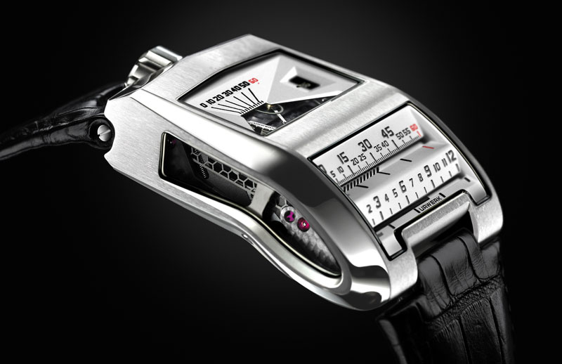 And before I forget, the other unique piece for Marcus Watches is also made in 18 carat white gold. However this one is black AlTiN coated, with striking red indices. This is the “UR-CC1 Cobra AlTiN Marcus Piece Unique”.