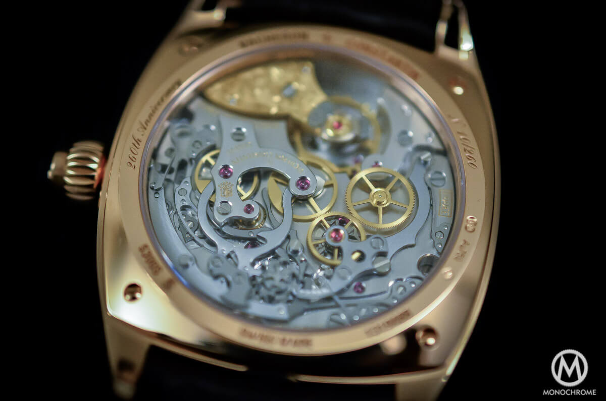 The story of the Calibre 3300 started in 2008 – yes, 7 years… we told you, developing a chronograph movement is long and it’s not because the Swiss are said to be slow! A chronograph is certainly one of the most complicated architectures possible, as multiple gears, levers, brakes, clutches and wheels have to be designed and assembled very precisely. On the other hand, in order to stay in the race against other big names of the industry – such as Patek, the historical competitor – Vacheron-Constantin had to bring its own movement on the market. Not that the Nouvelle-Lemania based movement was obsolete, but for marketing and commercial reasons, it is now a credibility argument to have an in-house chronograph movement.