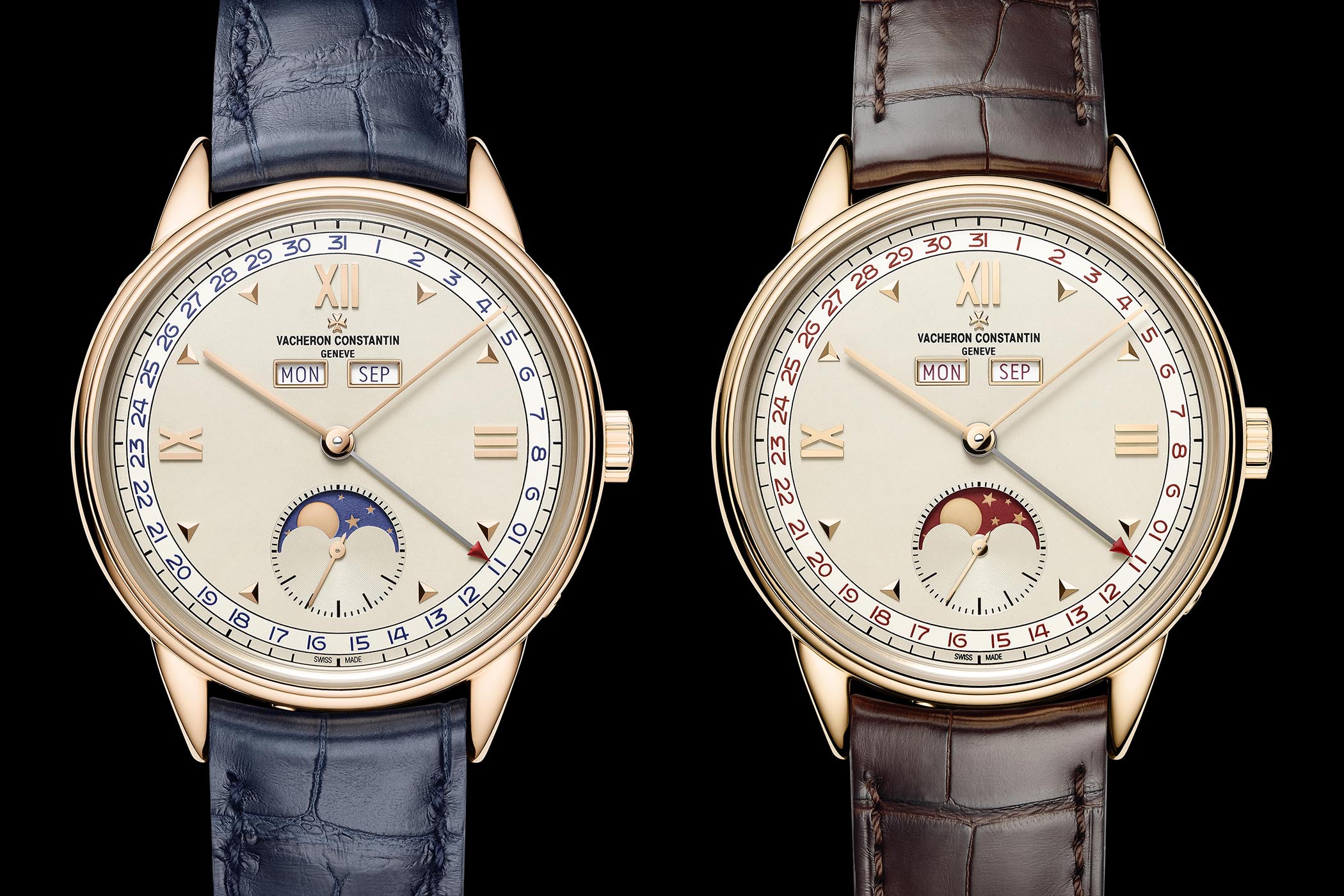 The new “Vacheron Constantin Historiques Triple Calendar 1942” on the right and the 1940s reference 4240 that inspired them on the left