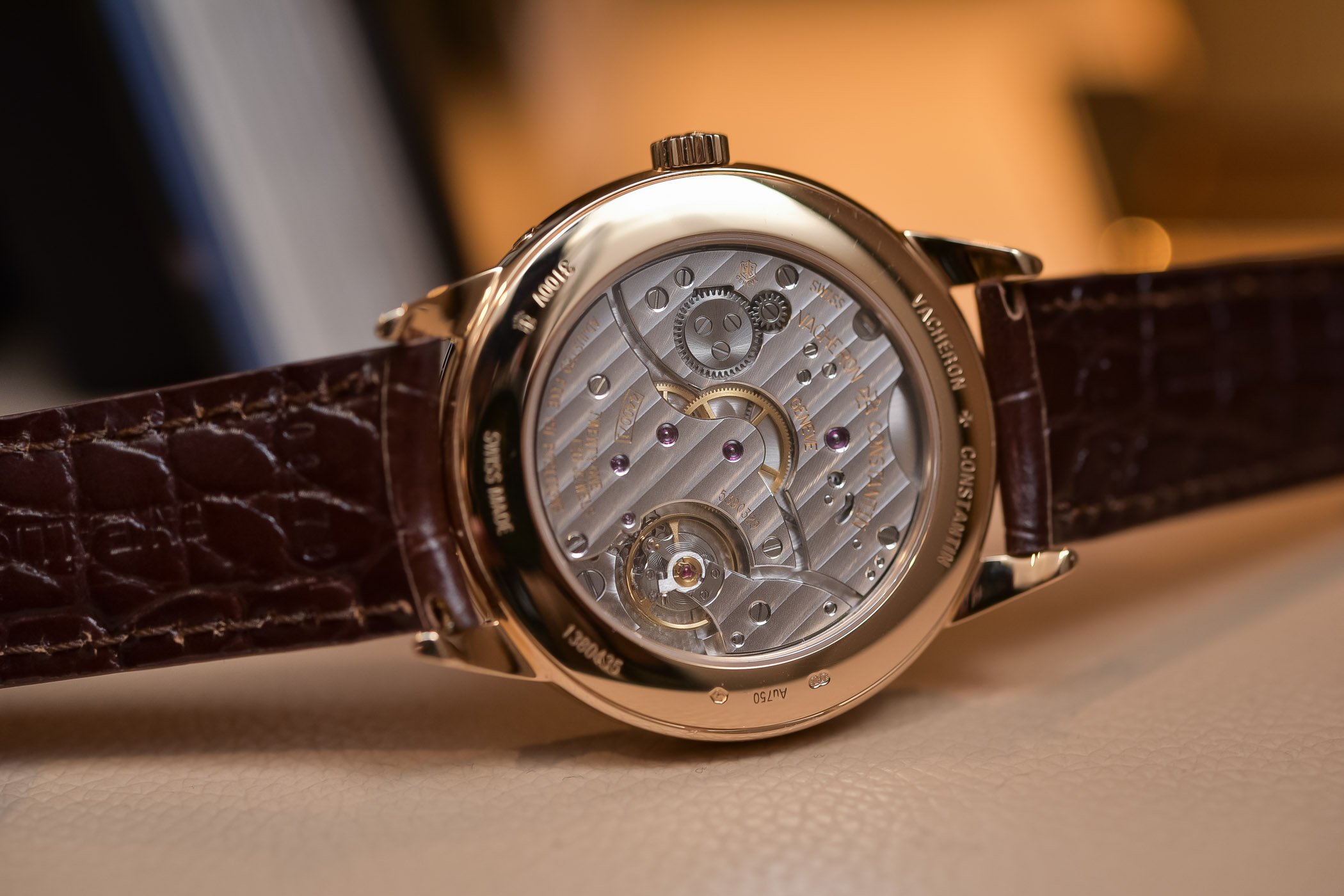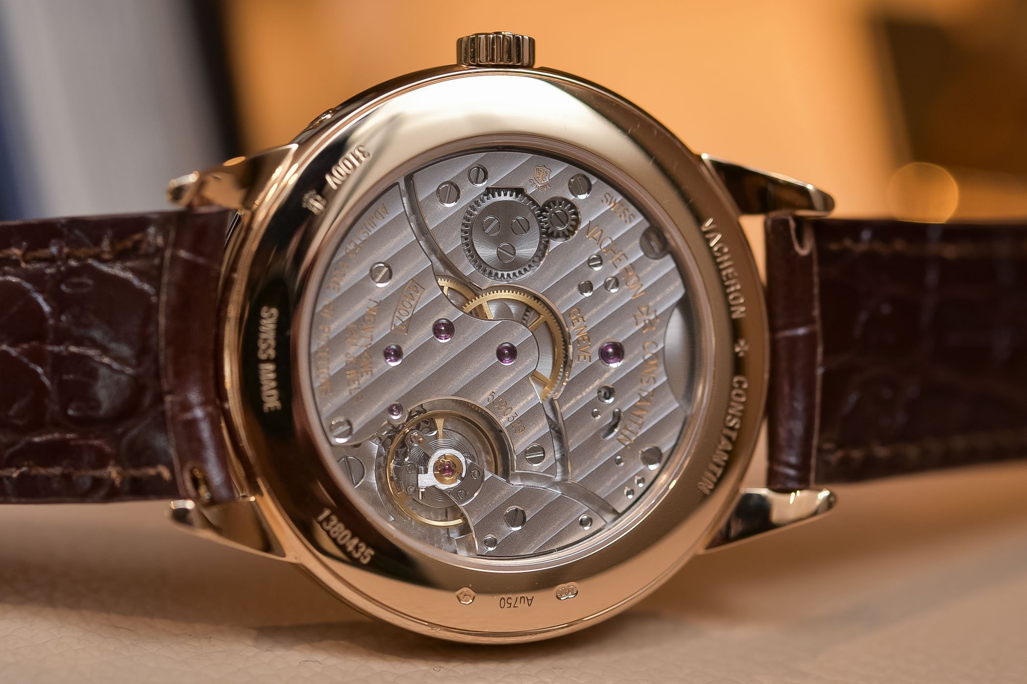 As Brice mentioned in his review of the 1942 version, the decoration of the movement itself is rather subdued, with relatively plain bridges. The level of finishing, however, is extremely high and demands closer inspection to be fully appreciated. This is, of course, to be expected from a movement that bears the Hallmark of Geneva, and VC does not disappoint, with polished bevels, internal angles, bevelled wheel spokes, nice engravings and perlage on the main plate.