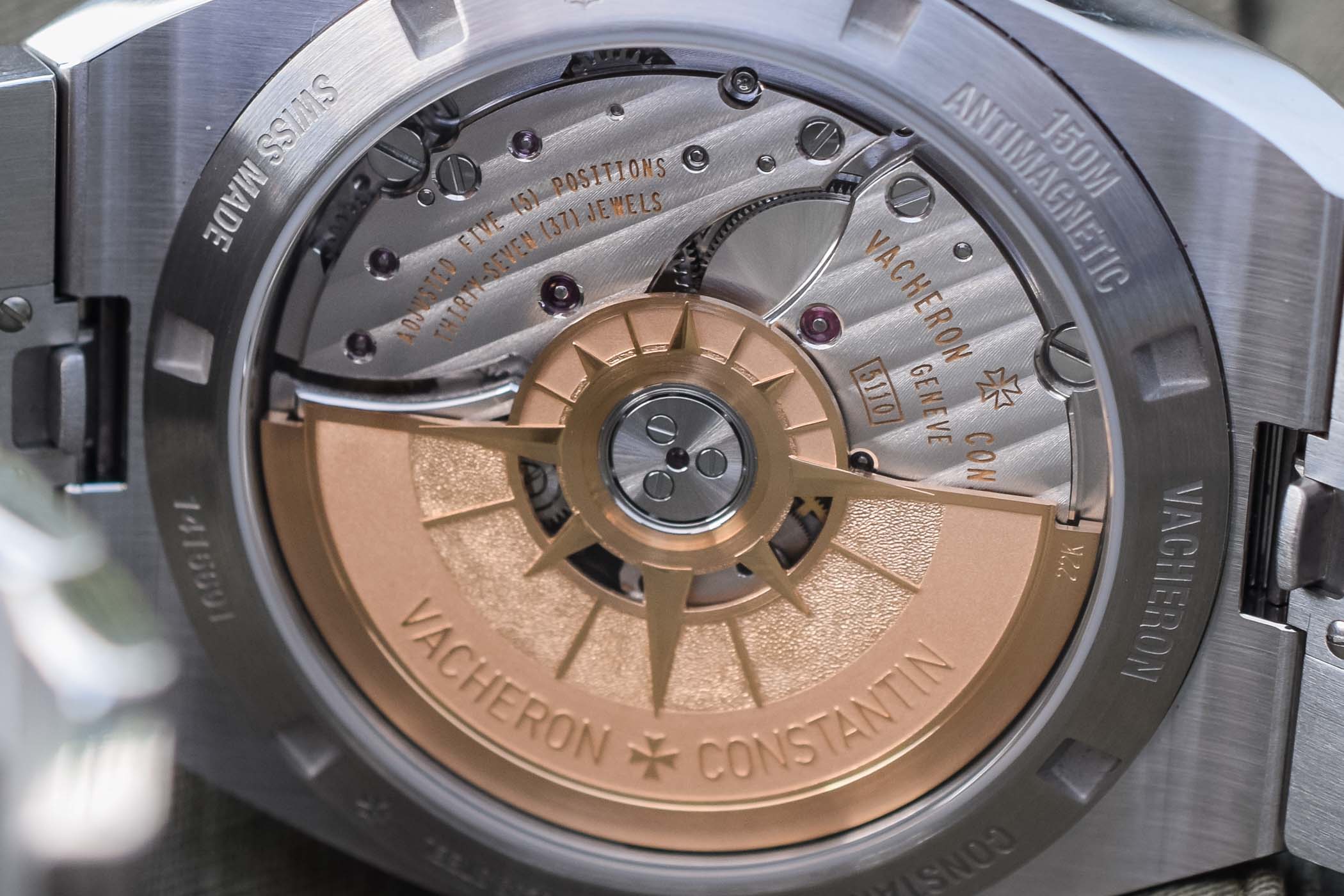 Visible through a sapphire caseback, calibre 5100DT is based on Vacheron’s latest generation of automatic movements (5100) with an additional time zone and AM/PM indicator. Measuring 30.6mm x 6mm thick, the movement is powered by a 22k gold oscillating weight decorated with a wind rose and sandblasted, polished and grained finishes, as you would expect from a watch bearing the Hallmark of Geneva certification. Calibre 5100 DT (dual time) has 234 components and is fitted with Vacheron’s in-house balance spring running at 4Hz with a power reserve of 60 hours.