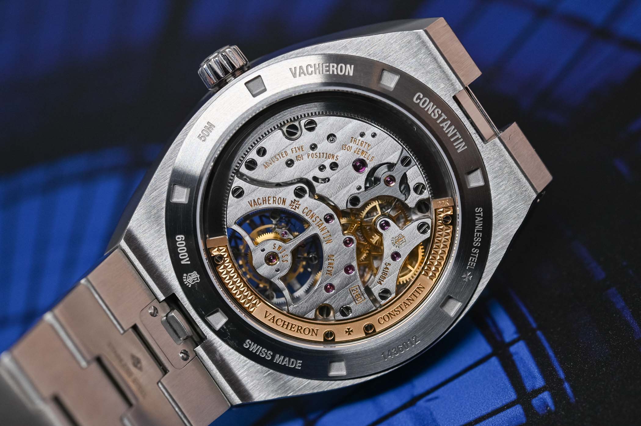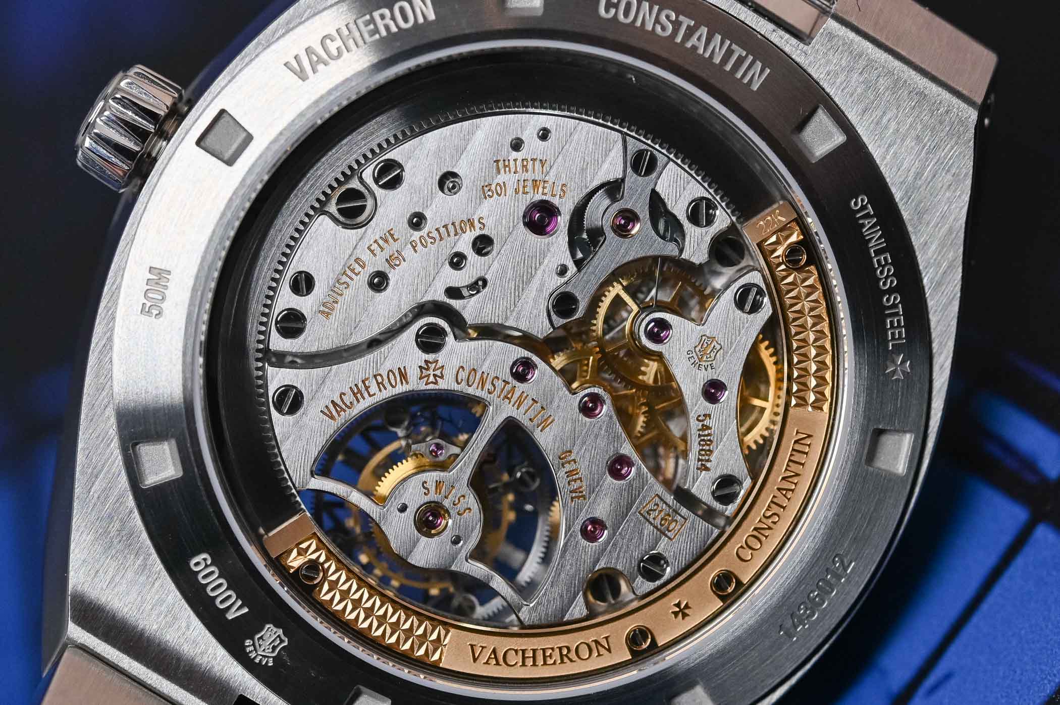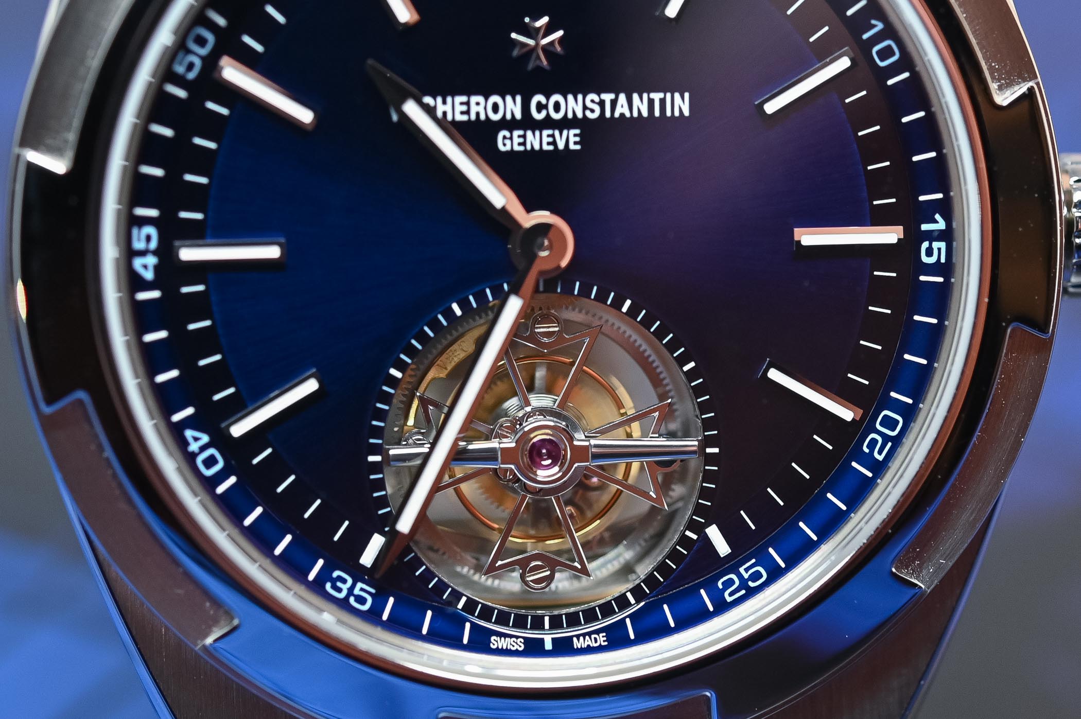 It is interesting to note that although the Overseas is the sportiest of the lot, both the Fiftysix Tourbillon and the Traditionelle Tourbillon have slightly thicker cases. Water-resistant to 50 metres, the case is also endowed with a soft-iron casing ring to protect the movement from magnetic fields.