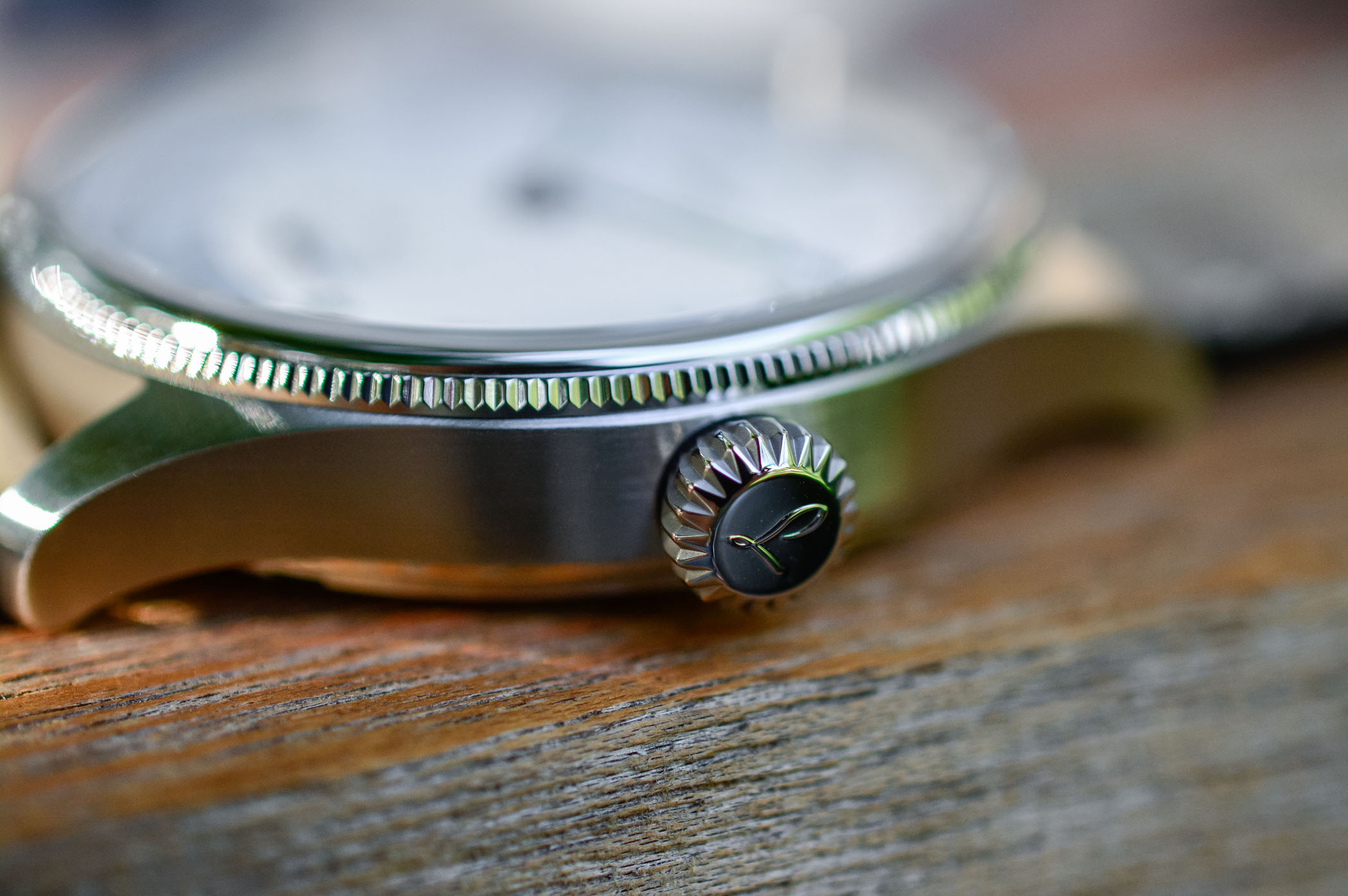 The design of the twin watches harkens back to 1940s pocket watches as well as wristwatches issued to German U-boat crews (U1 submarines) during the war. The 316L stainless steel case is 42.5mm in diameter x 10.7mm in height (49.8mm lug to lug), so a substantial watch without going over the top. The majority of the case has a brushed satin finish, but the bezel is polished. A coin-type knurled edge sits just below the bezel and reminds me a bit of Chronoswiss, but in this case, the detail is more subtle.