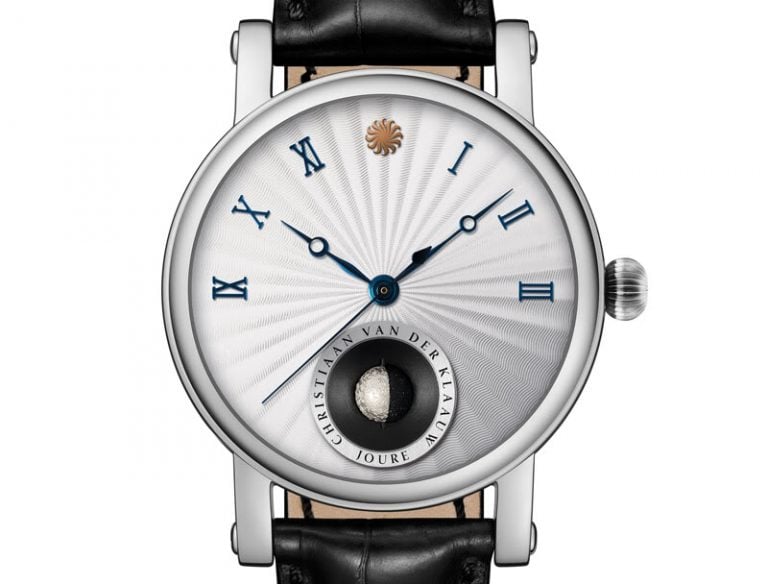 At 44mm, the rose gold Planetarium Poetic only displays time on a 24-hour display. It also manages to put time into a unique perspective. To be precise, it puts it in the context of the Mercury, Venus, Mars, Jupiter and Saturn (all the planets visible to the naked eye) and their positions in our solar system. The planets themselves are expertly executed in aventurine (for the substrait of the solar system itself), serpentine (Mercury), chloromelanite (Venus), turquoise (Earth), red jasper (Mars), blue agate (Jupiter) and sugilite Saturn).