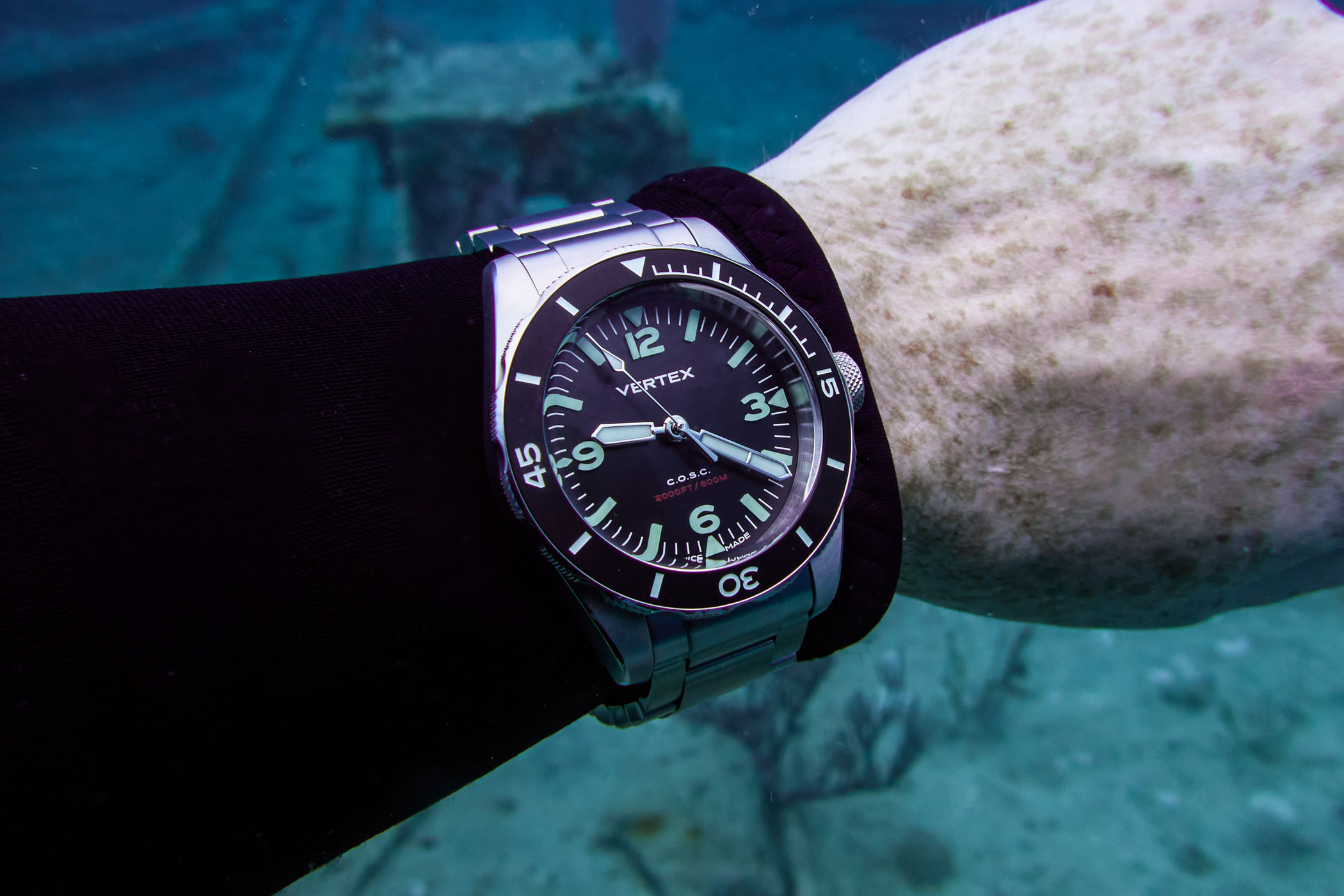 Vertex, one of the twelve "Dirty-Dozen" brands, takes the plunge on our Diving Editor's wrist.