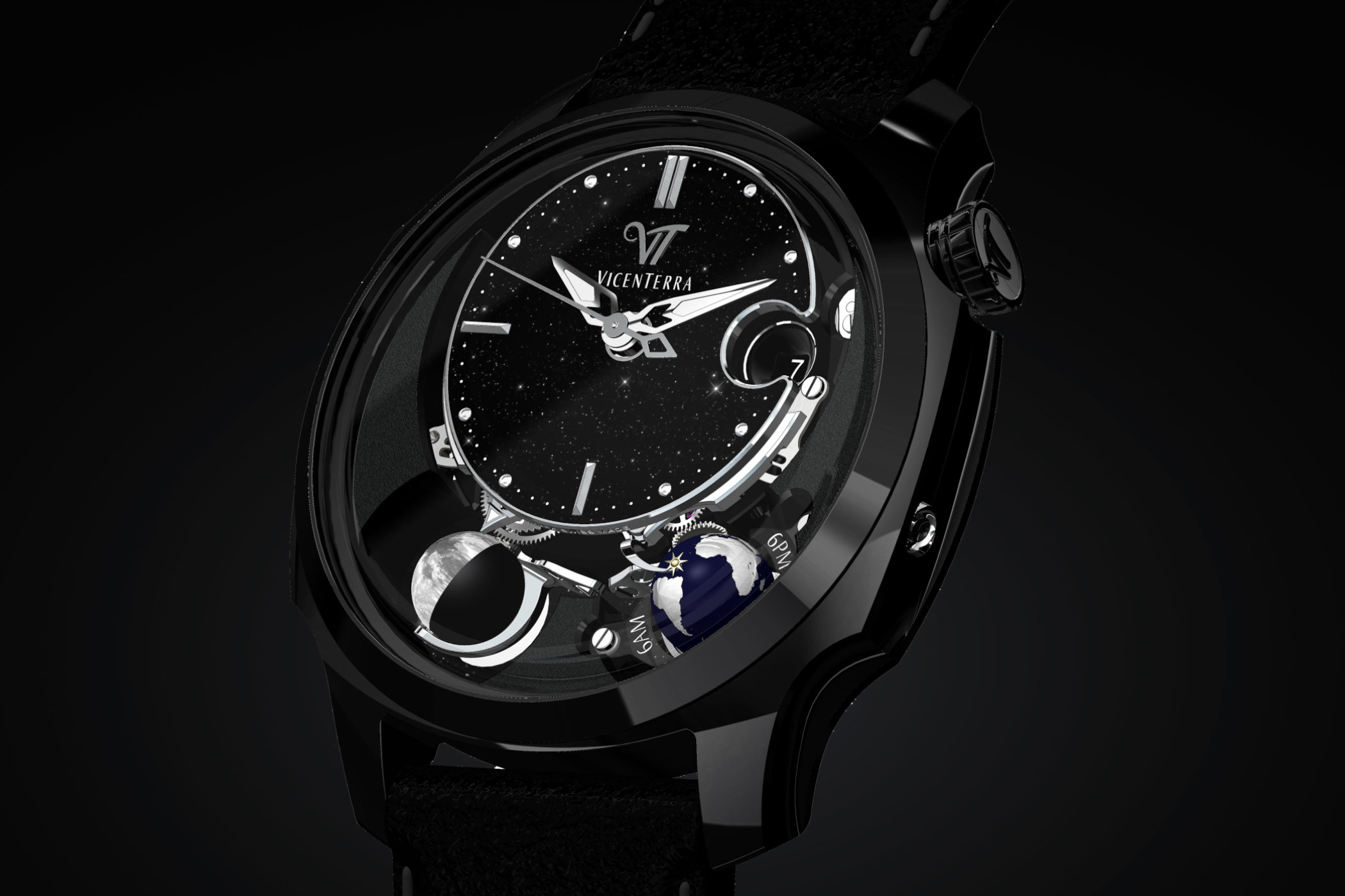 Vincent Plomb has been creating watches under the VicenTerra name for over a decade now. A journey that started with the GMT 3 in 2010, which was followed by the Tycho Brahe, and this year’s novelty, the AstroLUNA. All of the collections we’ve seen so far revolve around either a 3D earth, 3D moon, or a combination of the two, mixed with other astronomical displays. This updated, blacked-out model of the AstroLUNA follows the same design philosophy as the regular AstroLUNA, with a few very interesting tweaks.