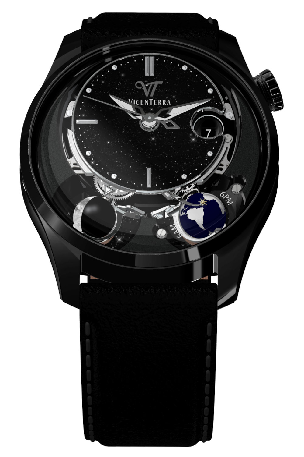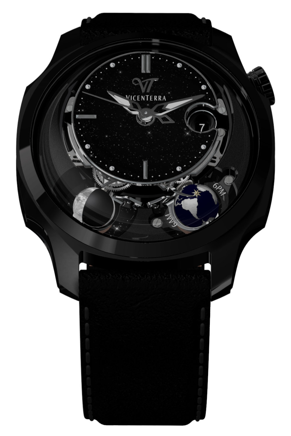 Vincent Plomb has been creating watches under the VicenTerra name for over a decade now. A journey that started with the GMT 3 in 2010, which was followed by the Tycho Brahe, and this year’s novelty, the AstroLUNA. All of the collections we’ve seen so far revolve around either a 3D earth, 3D moon, or a combination of the two, mixed with other astronomical displays. This updated, blacked-out model of the AstroLUNA follows the same design philosophy as the regular AstroLUNA, with a few very interesting tweaks.