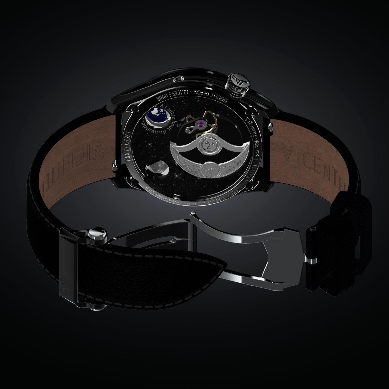 Both the VicenTerra AstroLUNA T2 Black Aventurine and Classic T2 Black Aventurine come on a dark blue calfskin leather strap, with an optional alligator leather strap. The strap is fitted with a grade 5 titanium folding buckle. Each one is limited to 25 pieces only and is available via subscription at a price of CHF 14,700, excluding taxes.