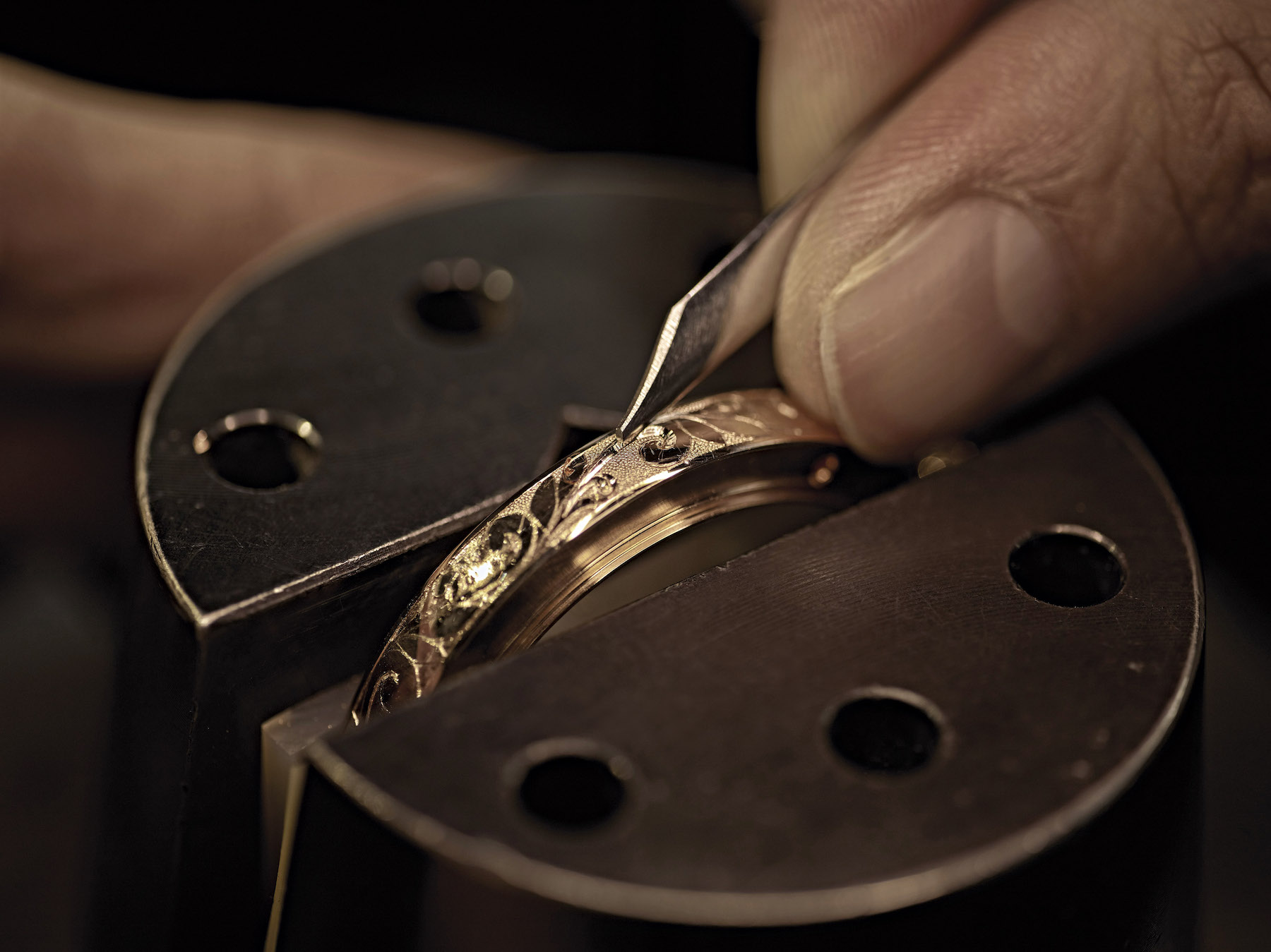 In these two locations, whether in Môtiers or Tramelan, Pascal Raffy has built production facilities where most of the parts of the Bovet 1822 watches are conceived, designed, produced, finished and decorated, including the case, dials and hands, most elements of the movements and even the hairspring, a sensitive and complex part of a watch that is rarely done internally. All the parts are finished to an exceptional level, showing the attention to detail given by watchmakers to their work. A vast array of techniques are performed, like anglages, stripes, perlage, polishing but also free-hand engraving, a signature element of past and present Bovet 1822 watches.