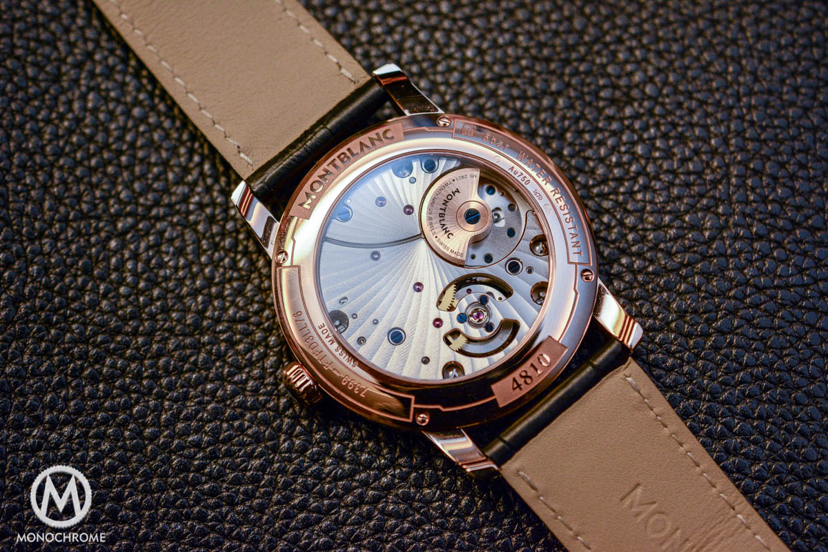 Once implemented in a watch, the advantage of the Montblanc ExoTourbillon goes further. The smaller tourbillon cage can easily be combined with a micro-rotor for automatic winding. The movement of the Montblanc 4810 ExoTourbillon Slim measures only 4.4mm in thickness, and is one of the slimmest automatic tourbillon movements available on the market.