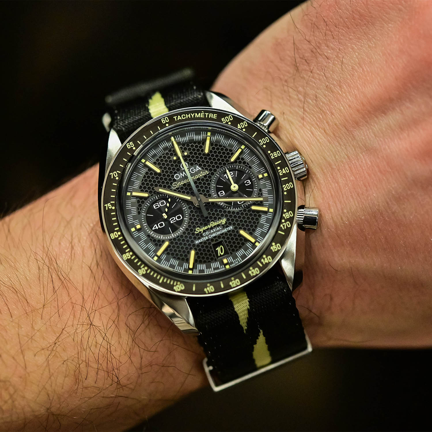 And this video is also the right moment to see the new watch in action, the Speedmaster Super Racing. A watch based on an existing Speedmaster Racing concept, it shares multiple identical features – the case, the proportions, the base calibre, the display – and adds a layer of exclusivity with a laser-etched sandwich dial and its bold black-and-yellow accents. But you’ll be able to have all the details about the watch in our previous article here, and of course in the video. The most important here is the Spirate system, which might look simple, but it’s actually very clever and technically complex. A bit over-engineered. But that’s what you expect from Omega… Once again, the brand sets new standard of precision and industrialisation.