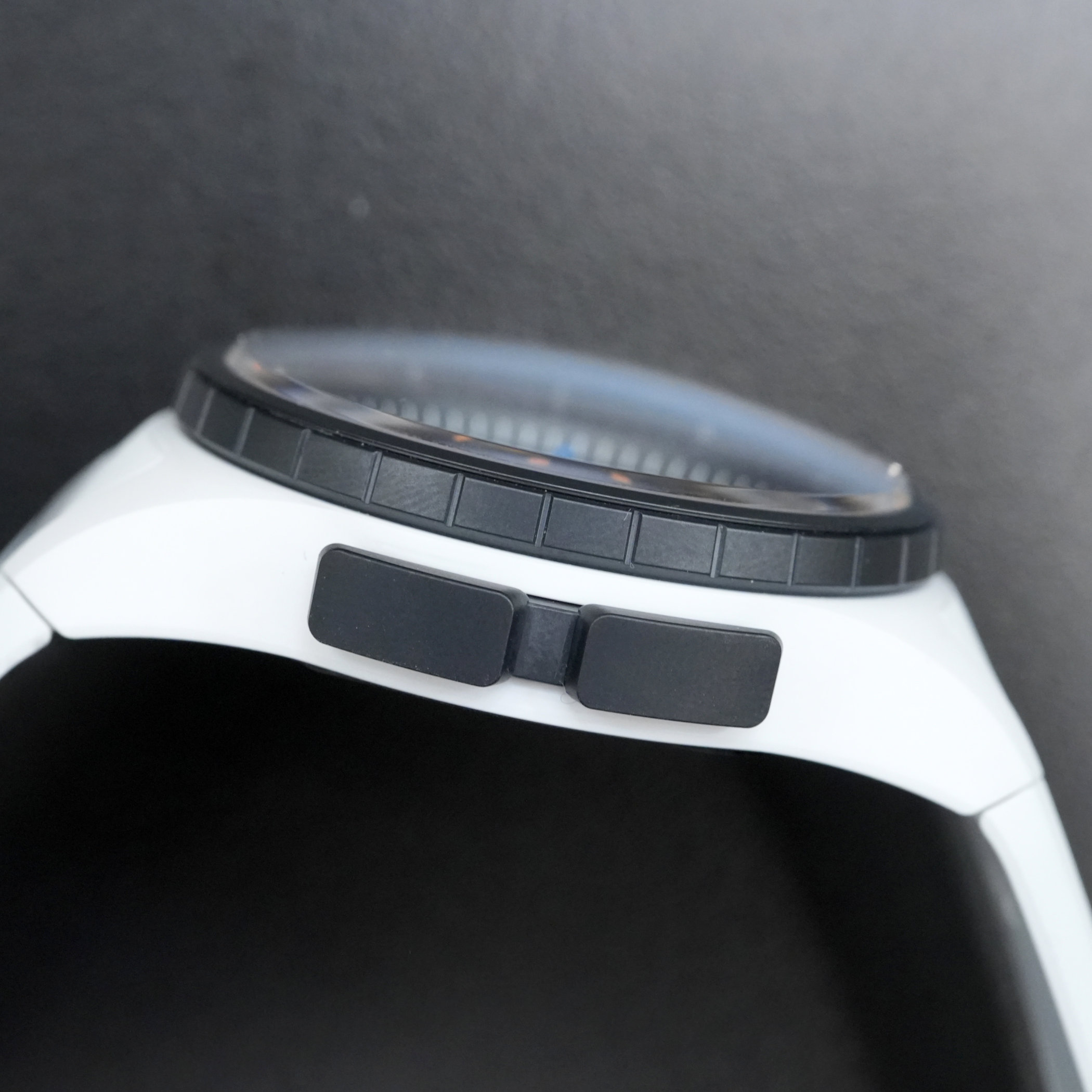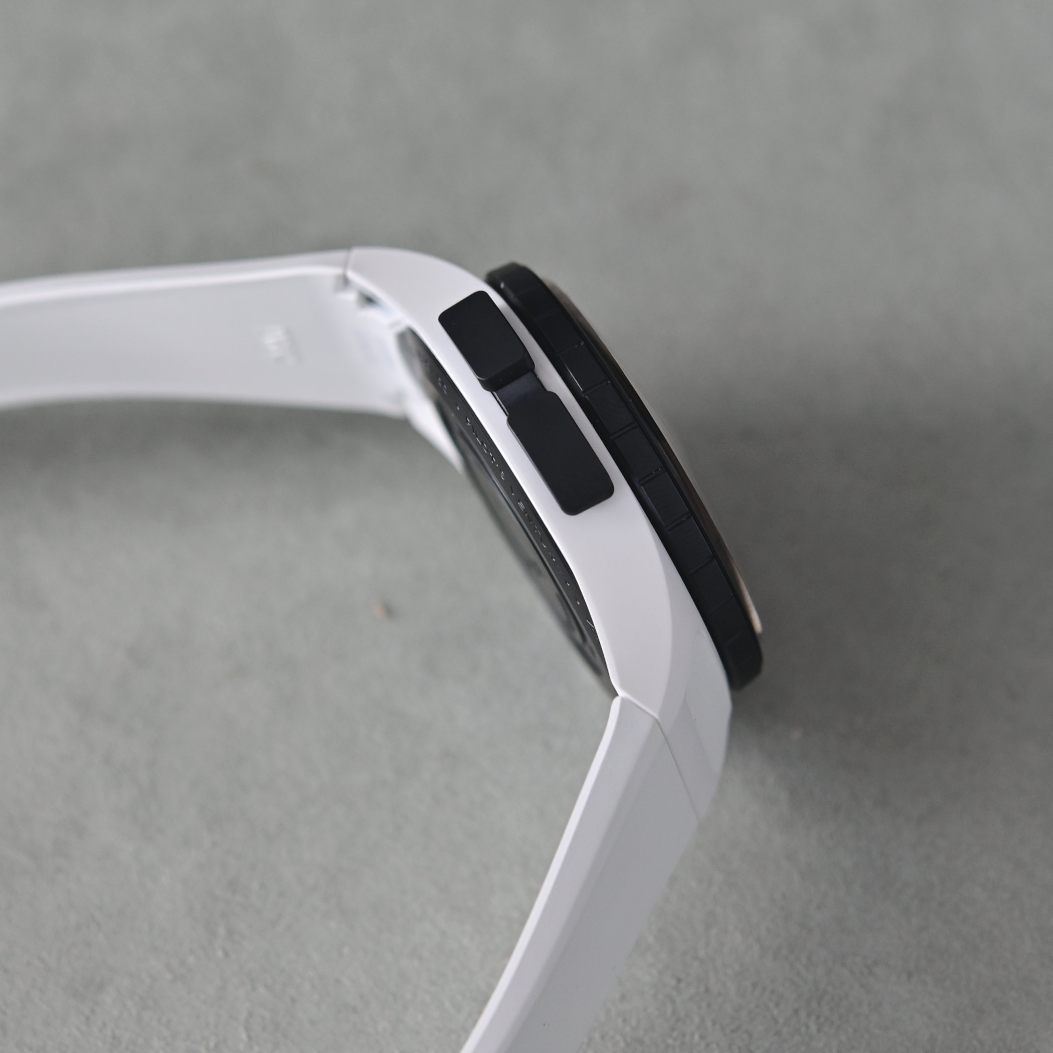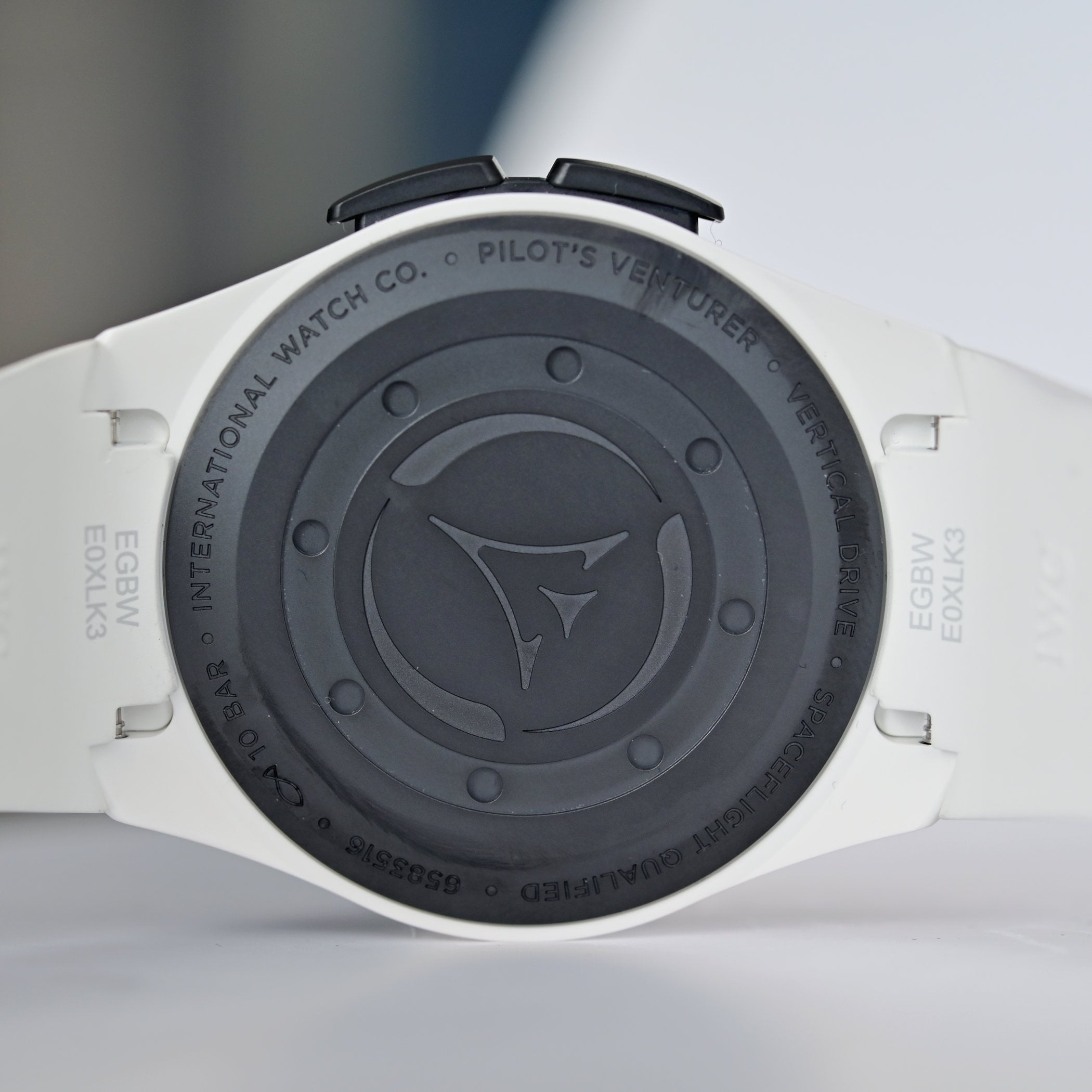 The Pilot Venturer Vertical Drive’s case is made of white zirconium oxide, better known as ceramic, a material IWC is hugely experienced in, as it first started using it back in 1986 already. This is topped by a rotatable notched Ceratanium bezel, another innovative material IWC is known for, which combines the lightness and robustness of titanium with the hardness and scratch-resistance similar to ceramic. The caseback is also done in Ceratanium, as is the special rocker switch on the left, and the whole package measures 44.3mm in diameter and 16.7mm in height. And before you go off that’s way too big, do keep in mind this is designed for a very specific purpose where astronauts wearing thick gloves must still be able to use and set it.