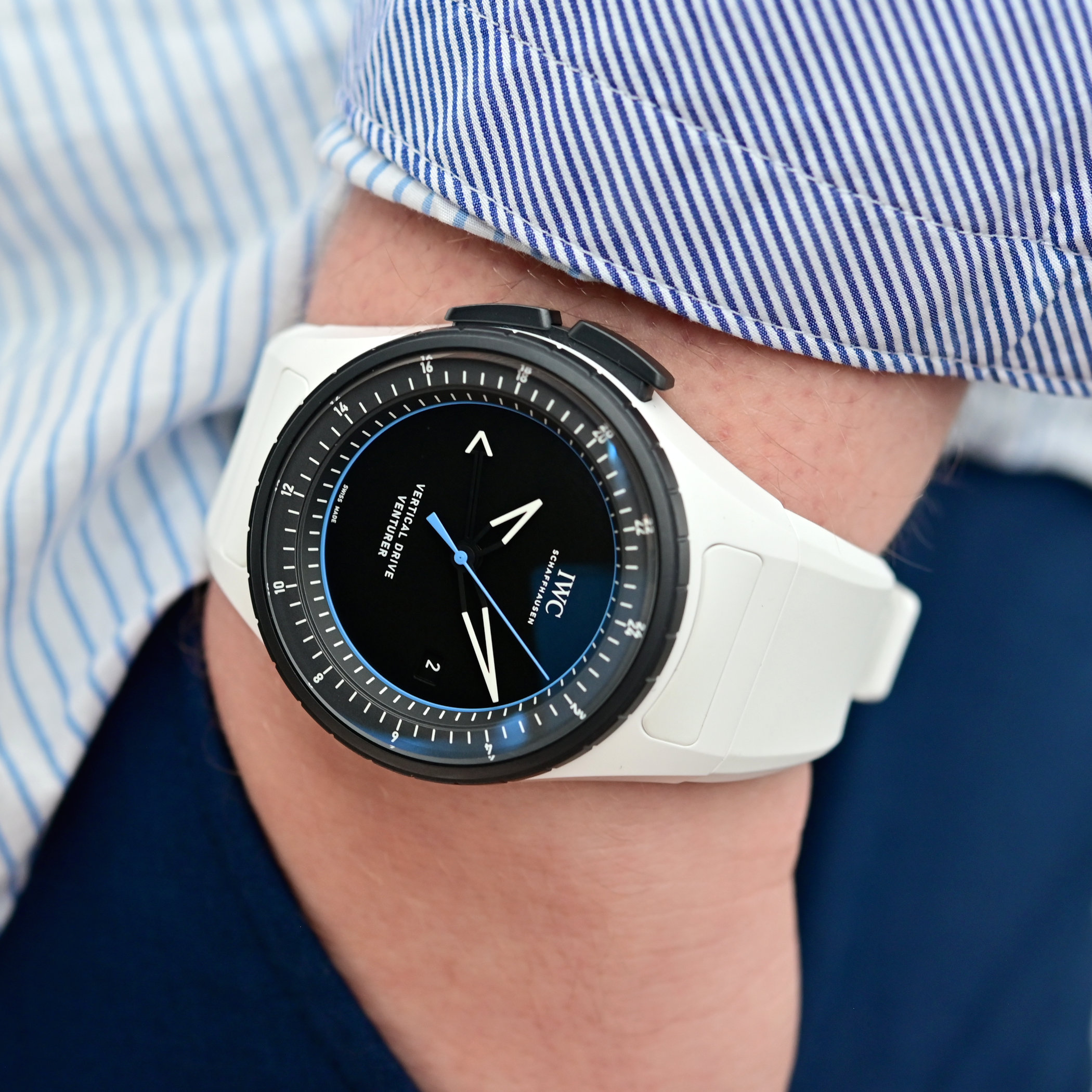 To ensure a secure and comfortable fit, IWC puts the Pilot’s Venturer Vertical Drive on a white FKM rubber strap with a Ceratanium pin buckle. It retails for CHF 24,000, and what’s also nice to know, and somewhat surprising given the niche-like style of the Pilot’s Venturer Vertical Drive, is the fact that it is not limited.