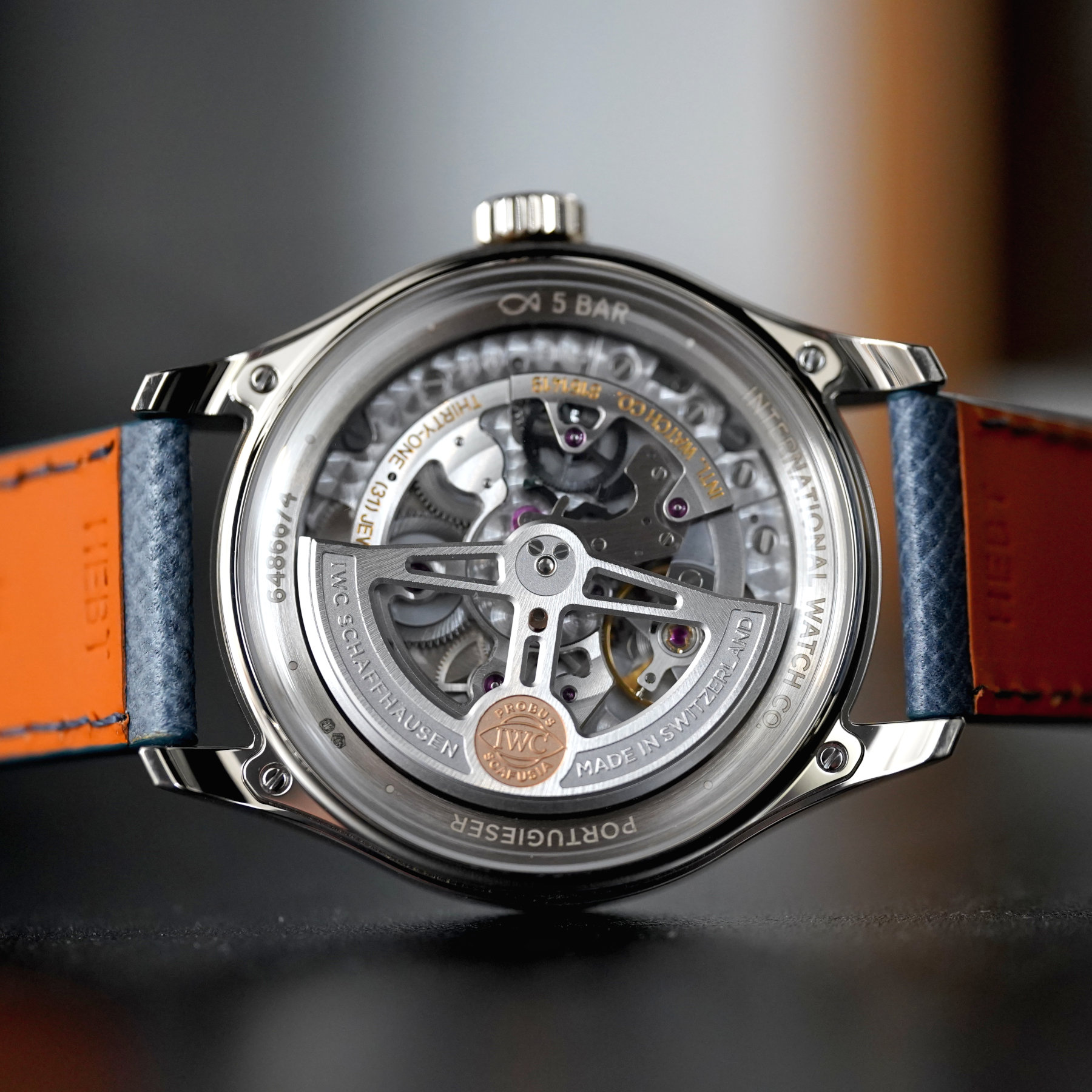 Now, on to the Portugieser Automatic 42. Being bigger in size also means there is more space for indications on the dial to play with. For this particular model in the range, it has always been a combination of a small seconds display at 9 o’clock, a power reserve display at 3 o’clock, and the date at 6′. The 42.4mm wide by 13mm tall case comes in stainless steel with silver-plated, deep blue or Dune (beige) dials, rose gold with an Obsidian Black dial or white gold with that lovely Horizon Blue dial. Each dial comes with a different colour for the hands, markers and prints to keep things interesting.