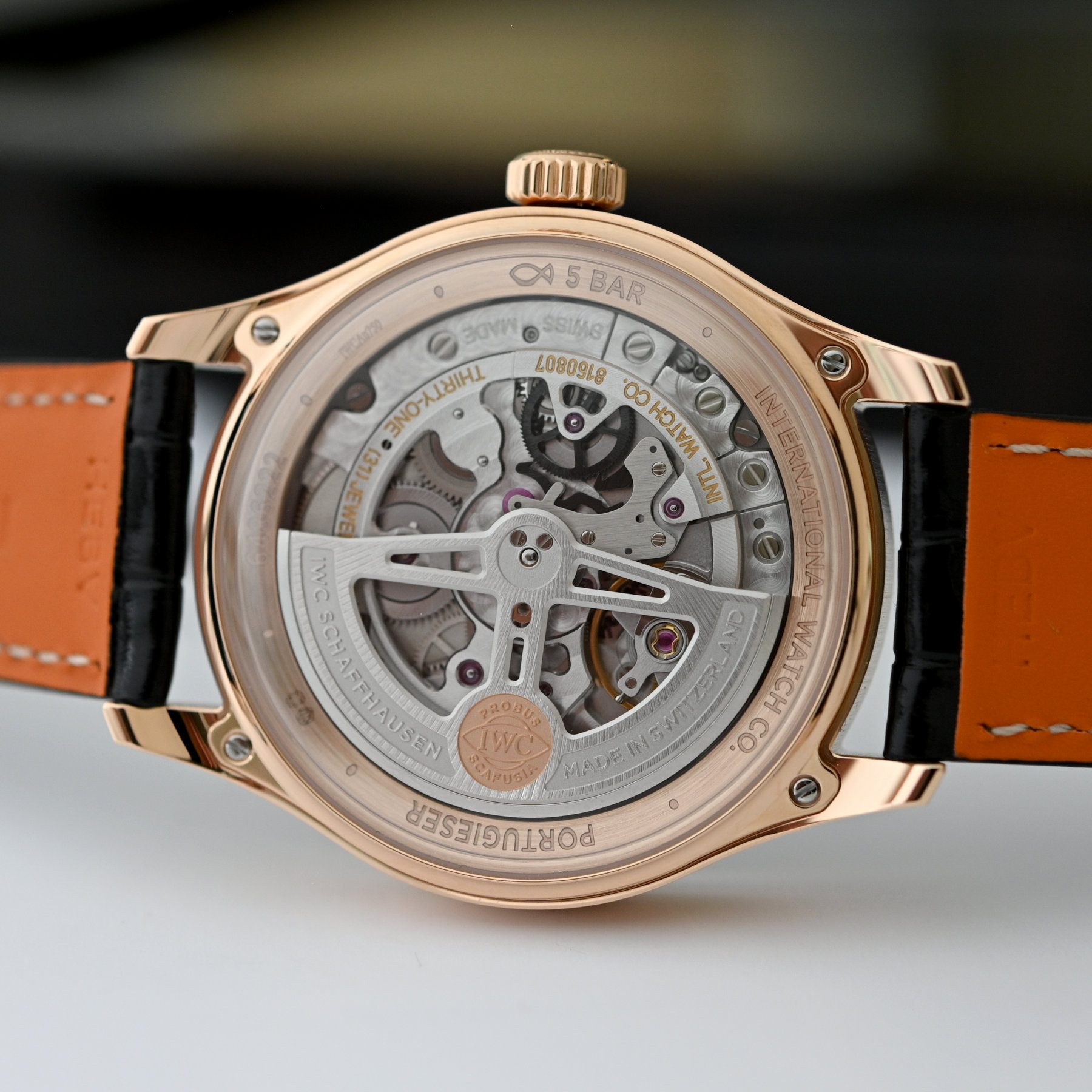 IWC also introduces a slightly improved movement for the new IW5017 sub-collection, known as calibre IW 52011. This in-house automatic movement, running at a rate of 28,800vph, still boasts a 168-hour or 7-day power reserve but is better protected against magnetic fields over the outgoing IW 52010 movement. Its Pellaton winding system is also equipped with virtually wear-free zirconium oxide ceramic components.