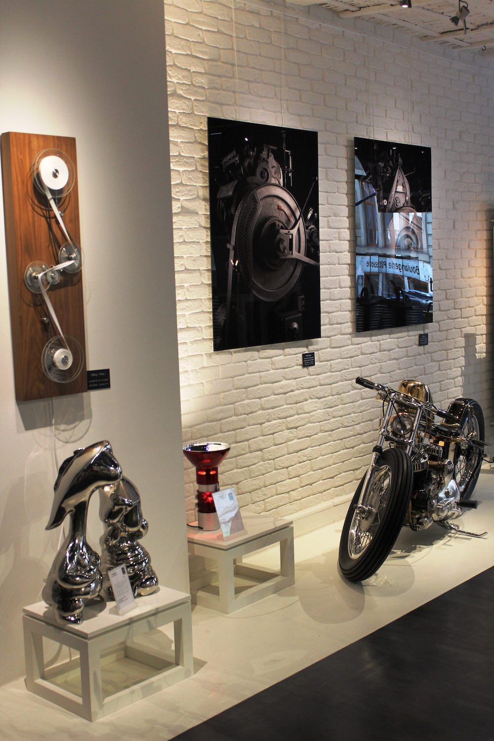 MB&F watches are ALWAYS created by Maximilian Büsser in collaboration with some of the best names of the independent watchmaking industry, like Stepan Sarpaneva (for the MoonMachine), Eric Giroud (the man behind the design of most of the MB&F timepieces), Black Badger with his luminous HMX or recently, Alain Silberstein with his own vision of colorful Bauhaus, applied on the LM1. What some consider as proper mechanical art (in terms of watches of course) is sold first by some retailers around the world but more interestingly in official MB&F boutiques. And these boutiques (located in Geneva, where we recorded this movies, as well as in Dubai and Taipei) are not only a showcase for the MB&F watches but include a whole universe of mechanical creations, including art, automatons and vehicles (which can difficultly be called bikes or motorbikes…).