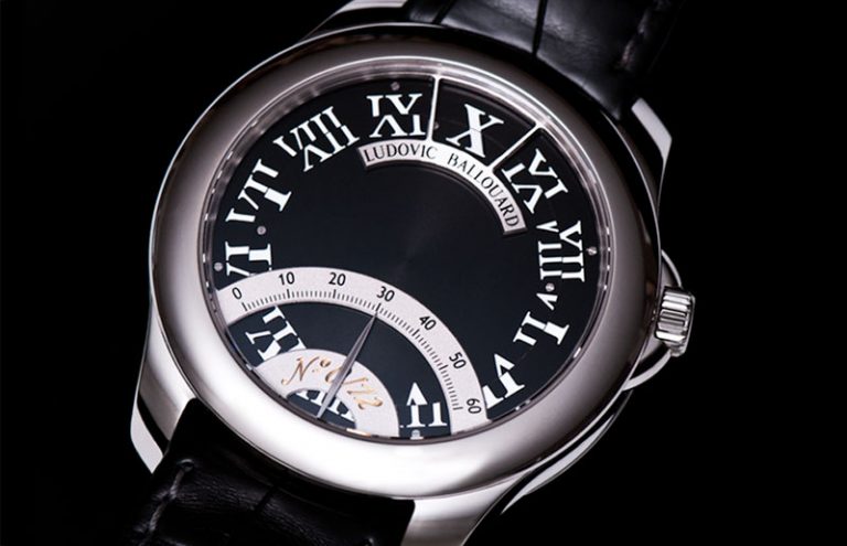 Ludovic Ballouard’s Upside Down Watch is one of those watches that has a very remarkable and recognizable design. It’s innovative way to display the time is unique and technically very interesting. For the PuristS 10th anniversay, Ludovic Ballouard made a limited edition in rose gold and platinum with blue numbers 1, 7, 8 and p10. The rose gold version is still available, but the platinum version is already sold out.