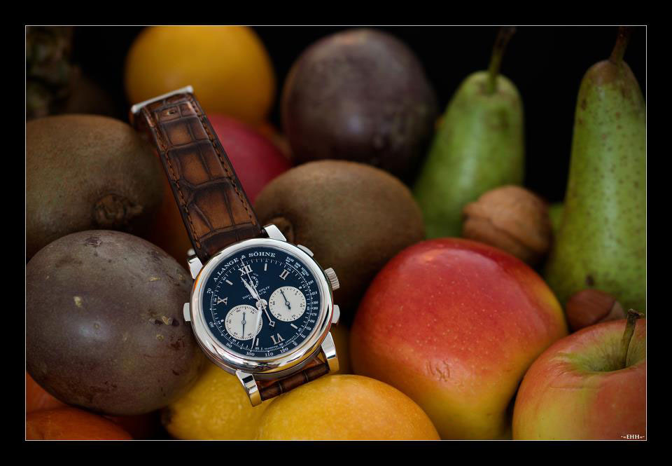 This week we’ll start with some rather unusual watch photos, or should I say pieces of art. The photos that we present you today are made by A. Lange & Söhne’s forum moderator at Timezone.com, Edwin. A few weeks ago we used some of his photos of the A. LAnge & Söhne Richard Lange Pour le Mérite and today we’ll show you some 16th and 17th century style still lifes featuring Edwin’s Datograph, Lange 1 and the mighty Double Split.