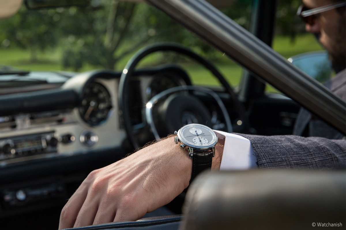 To finish, two of the ‘true beat’ watches by Arnold and Son, what we usually call a dead second or seconde morte. This complication allows the second hand to move just like in a quartz watch (once every second) but only with mechanical devices. In Arnold and Son’s collection, it is included in the DSTB (Dial Side True Beat) that shows all the elements of the dead second (lever, wheel and anchor) on its dial. The second timepiece is the CTB Chronograph True Beat, the first and only chronograph that comes with such a complication. The cool factor with the latter: the second hand, which is a true beat second hand, so that ticks only once per second, is on the same axis than the chronograph second hand, that does the usual 8 ticks per second. The central second hand will give the impression that it can catch up with the true beat seconds hand. A pleasure for your eyes!