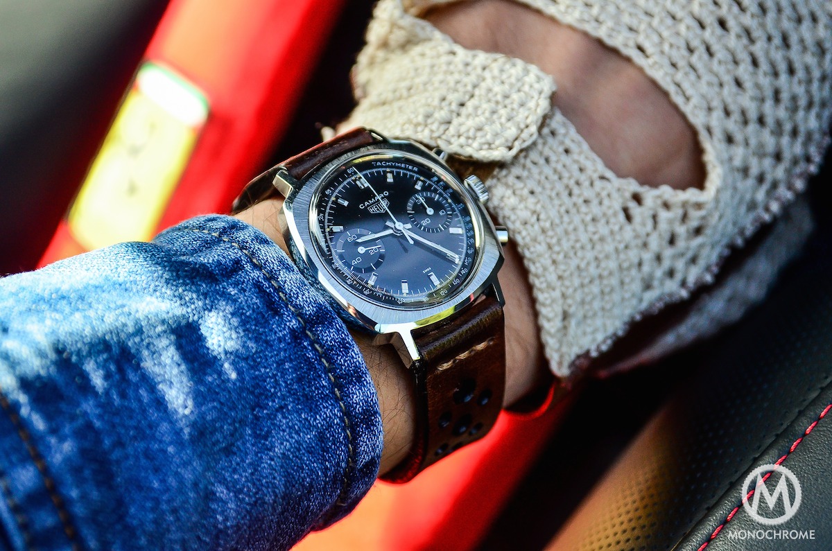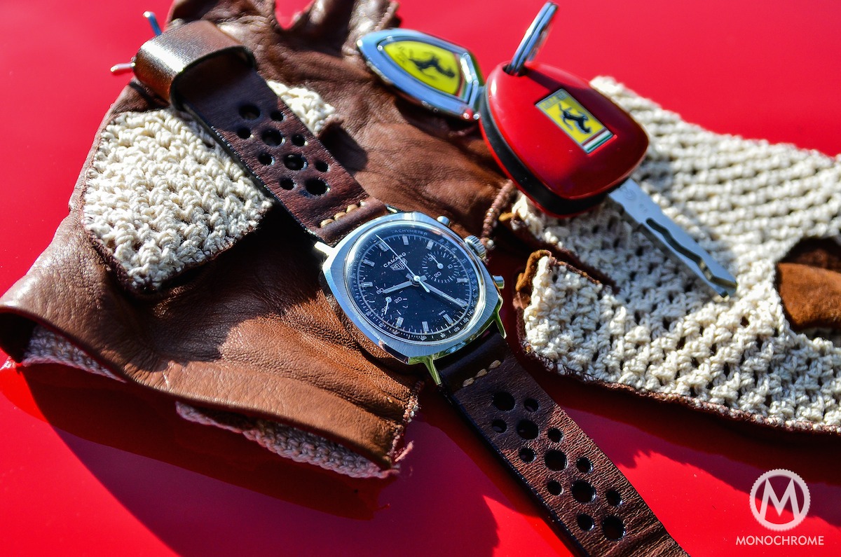 Weekly Watch Photo: Heuer Camaro + Monochrome Rally Strap + Ferrari 599 GTB