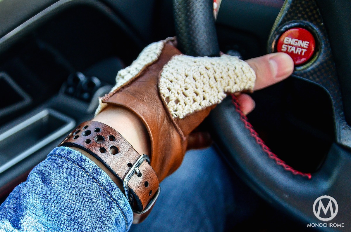 Watches and sports cars are two universes that match perfectly. Heuer and Ferrari: two iconic brands that dreams are made of. For this Weekly Watch Photo, we put a gorgeous vintage Heuer Camaro on our own exclusive Monochrome Rally Strap, and strapped it on our wrist. And with the help of one of Monochrome’s friends, we drove a stunning red Italian car, a Ferrari 599 GTB. Great times call for great photo reporting.
