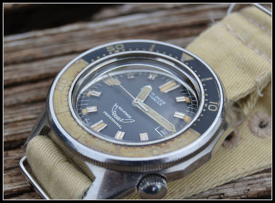 Have you ever heard of Squale dive watches? Today we’re going to have a look at very nice photos of a vintage Squale Ocean Diver Blandford 100 Atmos, photographed by Alessandra aka ‘Oliver Nelson’ (his forum nickname). This Squale is a perfect example of a vintage dive watch that was up there, back in the 1950’s and 1960’s, when dive watches were evolving to how we know them today.
