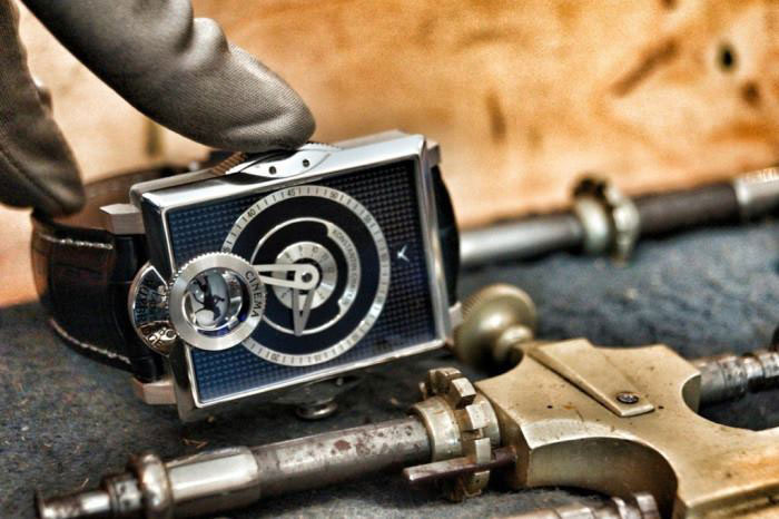 Just the other day we bumped into the brilliant photo of Konstantin Chaykin’s Cinema Watch. When we told you about this watch before (click here) we told you our first impression was that it had of the shape and layout of a medium-format camera. So what better photo to start our Weekly Watch Photo with.