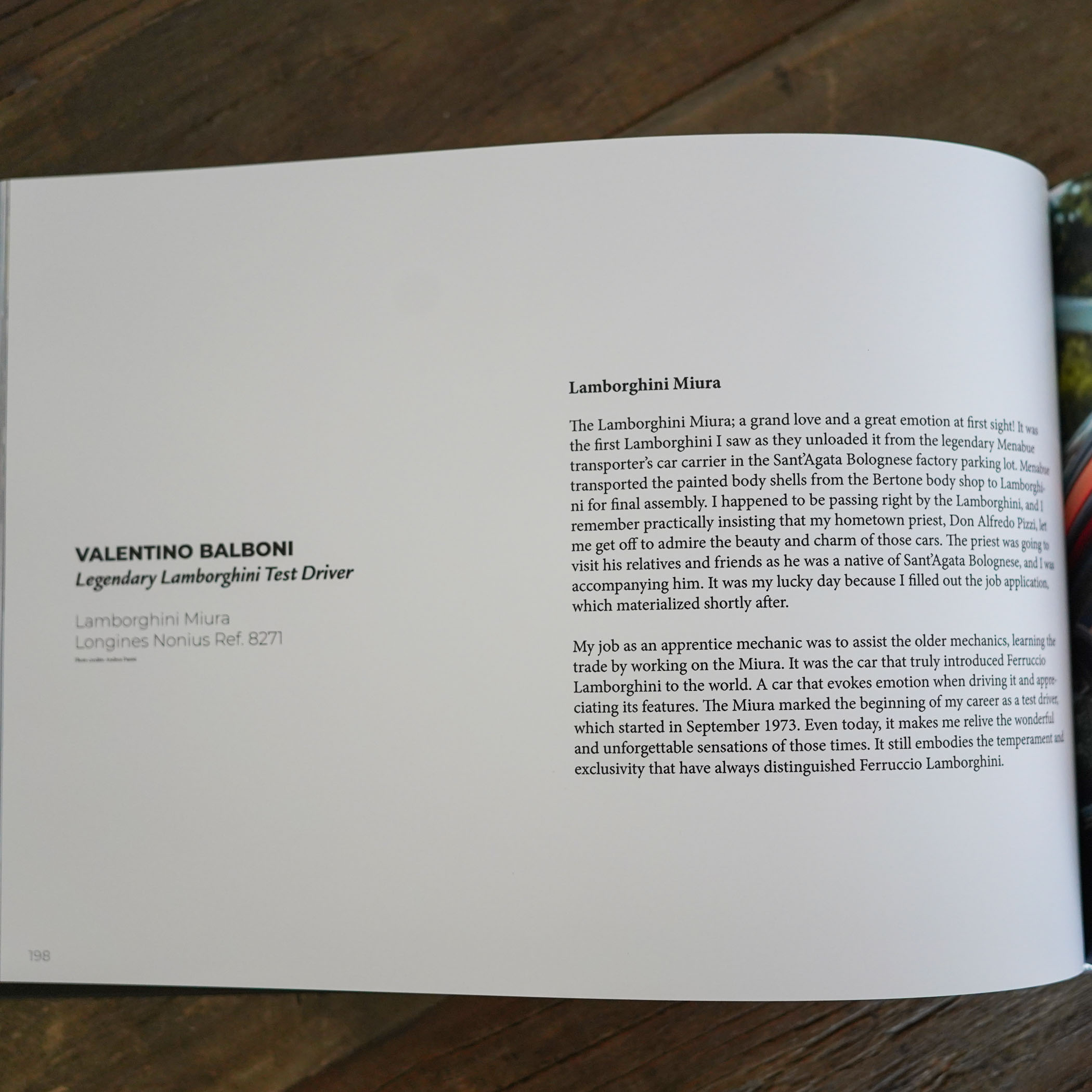 Featuring insights from over 50 prominent figures from both sectors, the car industry (designers, racing drivers, collectors) and the watch community (watchmakers, entrepreneurs, watch journalists), they share their personal experiences with their favourite cars and watches, and how these two passions have merged for them. The book covers topics such as the intersection between automotive design and high-end watchmaking, personal stories behind favourite cars and watches of said personalities, how the wristwatch became an essential tool for car enthusiasts and drivers and, importantly the mutual influence between the aesthetics of classic cars and luxury watches.