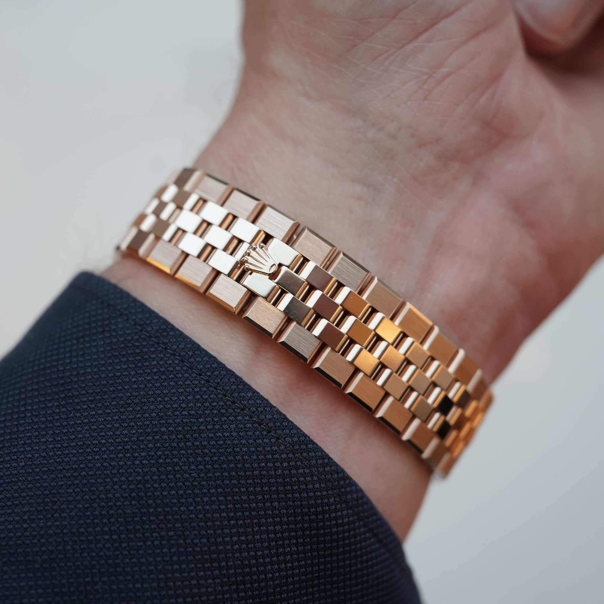 Secondly, 40mm is usually the norm at Rolex for men’s watches (Submariner, GMT-Master II, Daytona, Day-Date). And, in most watches, this diameter works perfectly, except in the Explorer 1 maybe, where the 36mm seems more appropriate. With the Land-Dweller, despite a short L2L measurement, the watch felt quite “present” on my wrist. It might be due to the tonneau shape of the case, adding some surface area, or the combination with an integrated bracelet. My last comment has to do with comfort, and it is something I share with my colleague Robin. Something that happens often to me with watches of this category (Royal Oak 41mm, PRX 40mm): there’s a gap between my wrist and the place where the case and the bracelet connect. I thought it had to do with the fact that I have small wrists (16.5cm), but Robin, who’s far from being short (over 2 metres in height and with 18cm wrists), also experienced an identical issue (less than me, to be fair). Below, a comparison of both watches on the wrist of our editor Robin – 40mm on the left, 36mm on the right.