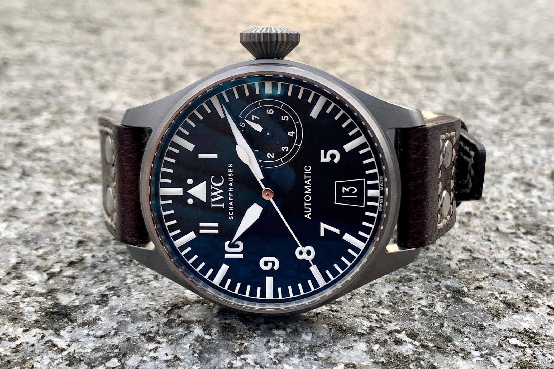 When Chris Granger-Herr, the CEO of IWC, posted a photo of himself wearing the prototype for this updated version of the original 5002-generation Big Pilot in matte titanium while on his African Safari, collectors took notice. Shortly after, IWC announced a limited edition of 100 watches, which sold out almost instantly via Instagram (despite a six-month wait for them to be built). The watch was immediately nicknamed the “Safari” Big Pilot, while IWC officially named it the “Tribute to 5002.” Today we’re talking to @winewhiskywatches about his IWC Big Pilot Tribute to 5002 ref. IW501007 AKA the “Safari” Big Pilot.