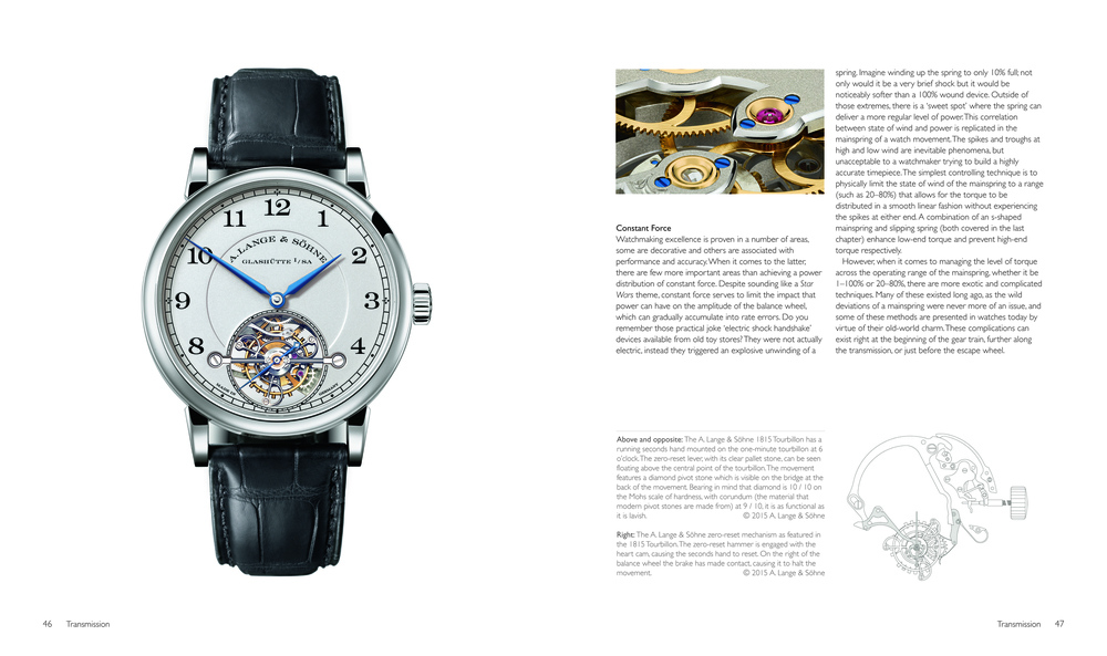 This nice Coffee table book is split into two sections. The first one is called “Basic Watch Mechanics and the Watch Movement”. This educational introduction provides an understanding of how mechanical watches work, exploring in some detail the different basic part/functions of a movement (power, transmission, distribution and regulation). This section also highlights critical concepts connected with these basic functions of a mechanical watch and explains how they have been optimized (e.g long power reserve, constant force mechanism, escapements, high-frequency, etc…).