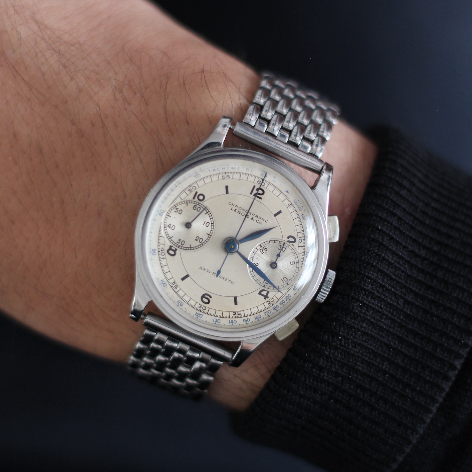 Lebois & Co was initially founded by Raymond Dodane, a third-generation member of the Dodane watchmaking family. The brand has an up-and-down life until its demise in 1972. In 1940 Italian aircraft manufacturer Caproni buys Lebois & Co chronograph watches to be gifted to Swedish airmen who came to Italy to pick up and fly back their new Caproni aircraft. Following WWII the brand was transferred to the Italian importers with production outsourced to the Dodane watch manufacture. By 1972, after almost 40 years of watchmaking under the Lebois & Co, the brand ceases operations and becomes dormant.